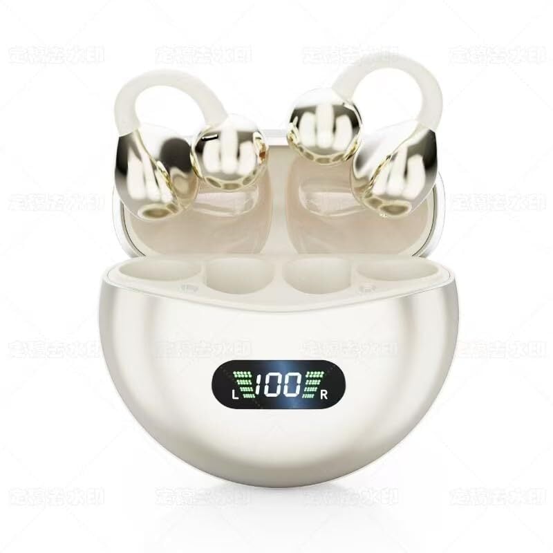 2025モデル ワイヤレスイヤホン イヤーカフ イヤホン Bluetooth ながら聴き オープンイヤー 耳挟み式 耳を塞がない マイク付き 通話 LEDディスプレイ残量表示 人間工学設計 (ベージュ)