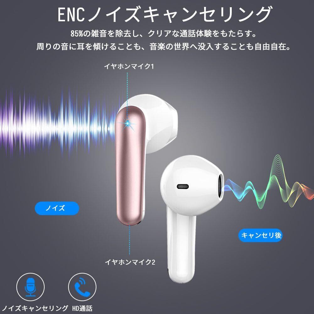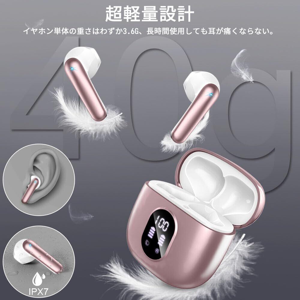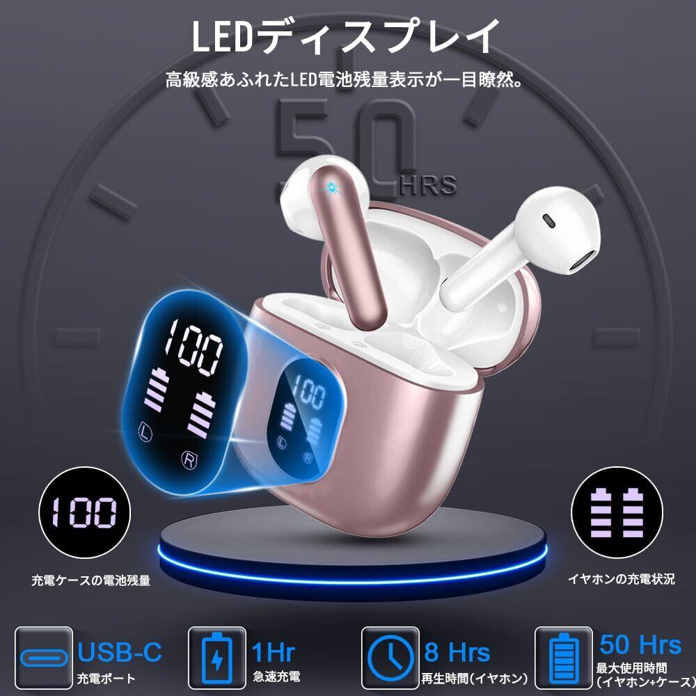 ワイヤレスイヤホン Bluetooth 5.3 最大50時間再生 2024新登場 ENCノイズキャンセリング マイク付きハンズフリー通話 ブルートゥース イヤホン Hi-Fi音質 重低音 EDR搭載 Type-C急速充電 タッチ式音量調整 IPX7防水 LEDディスプレイ ぶるーとぅーすイヤホン iPhone/Android適用 片耳/両耳 小型軽量 日本語取扱説明書付き(ローズゴールド-2)