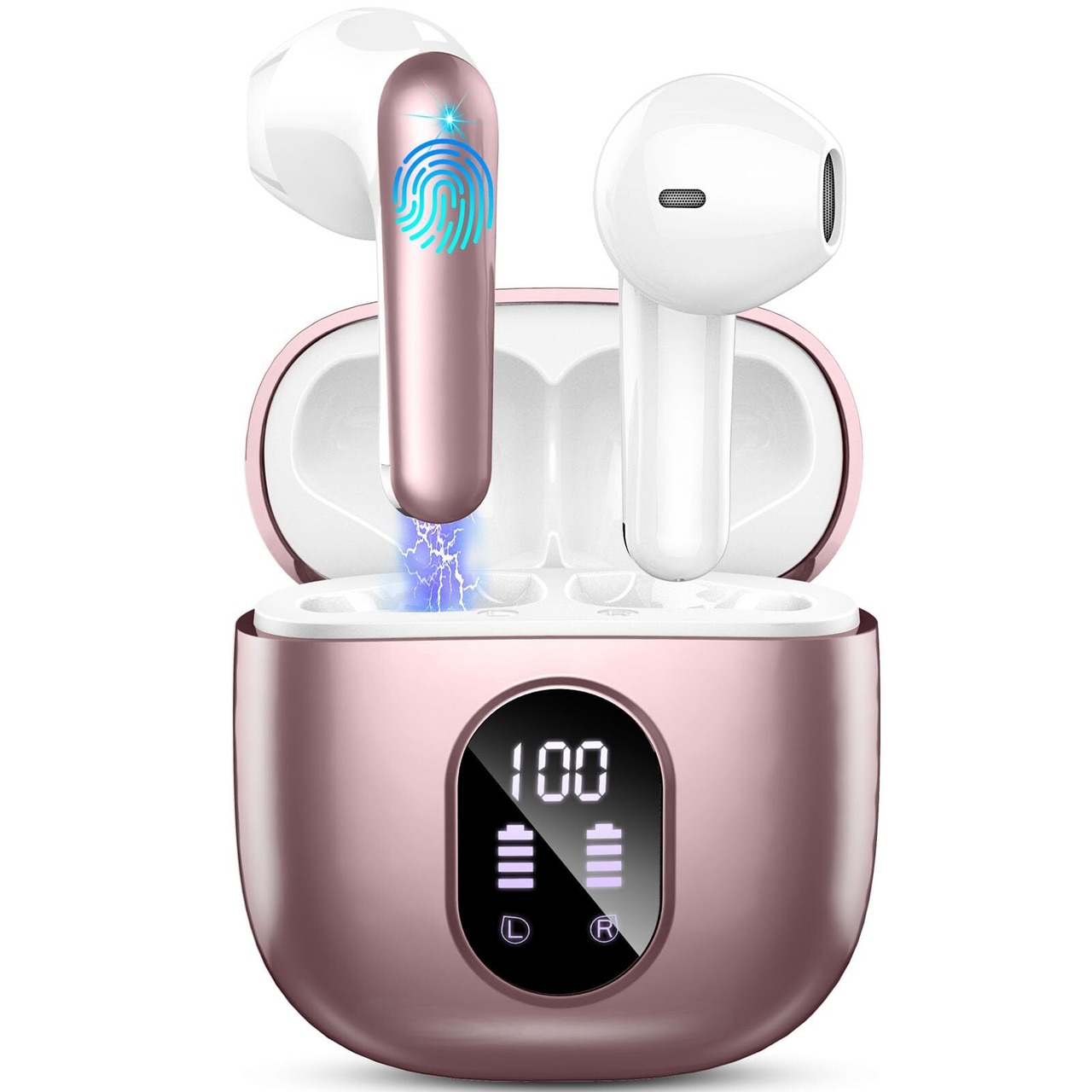 ワイヤレスイヤホン Bluetooth 5.3 最大50時間再生 2024新登場 ENCノイズキャンセリング マイク付きハンズフリー通話 ブルートゥース イヤホン Hi-Fi音質 重低音 EDR搭載 Type-C急速充電 タッチ式音量調整 IPX7防水 LEDディスプレイ ぶるーとぅーすイヤホン iPhone/Android適用 片耳/両耳 小型軽量 日本語取扱説明書付き(ローズゴールド-2) | kki
