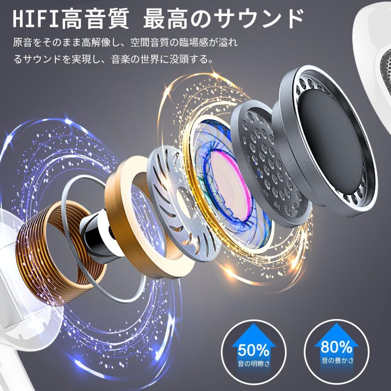 【無与類比の音質&4つのマイクによるENCノイズキャンセリング】ブルートゥースイヤホンは、13 mm のグラフェンスピーカーを内蔵し、AAC および SBC コーディックに対応しているため、強力なバス、激しいハイトーン、そしてクリアなミディアムを提供します。内蔵の高音質オーディオチップが音楽の細部まで捉え、比類のない音楽体験を提供します。無線イヤホンには、左右合計4基の高性能マイクが搭載されており、ENC通話ノイズキャンセリング技術を利用して周囲の騒音を最大30dB低減し、クリアな通話内容だけが通話相手に伝わります。人混みや駅、地下鉄などの場所でもデータ転送速度、接続の安定性が一躍で、ノイズなどが最小限に抑えられ、安定した通信を実現しています。