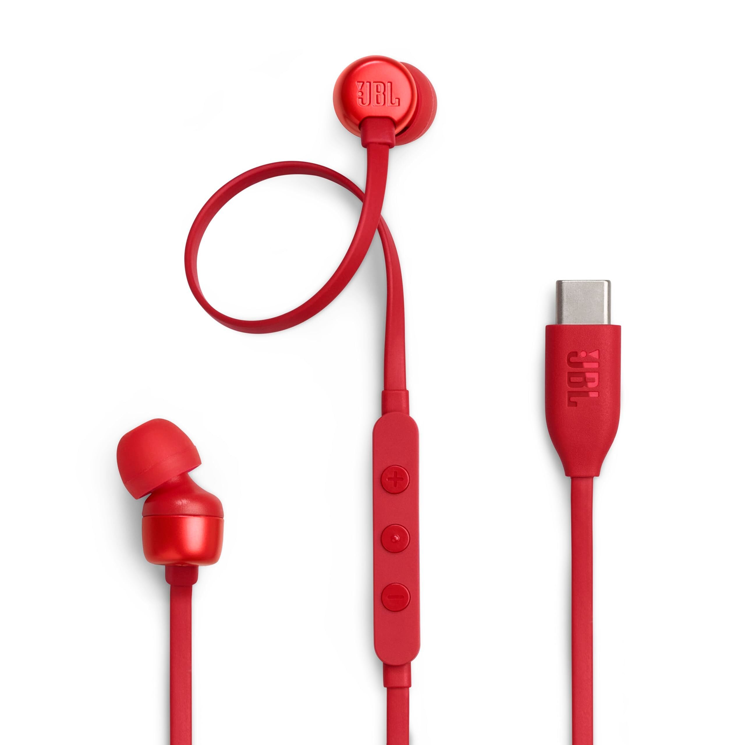 JBL TUNE310C USB Type-C 接続 イヤホン 96kHz/24bit DAC内蔵/通話可能マイク付き3ボタンリモコン/フラットケーブル/3種のプリセットイコライザー搭載/ハイレゾ/9mm径ダイナミックドライバー/レッド/JBLT310CRED | kki