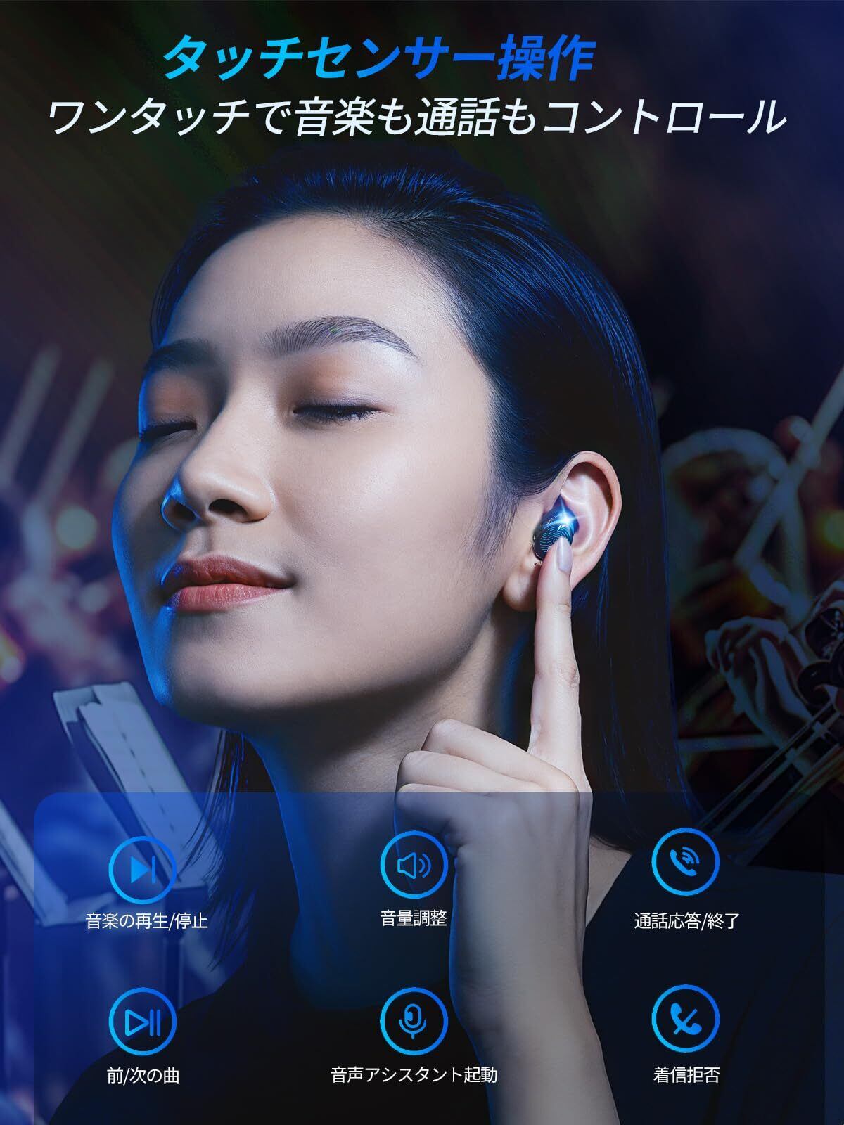 【自動ペアリング・LED電量表示】 日本語音声ガイド付きで、初回接続後はケースから取り出すだけで自動的に電源オン&ペアリング完了。収納時にはLEDディスプレイで残量をひと目で確認可能。高感度タッチセンサーにより、音楽操作や通話も軽く触れるだけでスムーズに行えます。