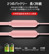【斜め入耳式&2つのバッテリー】人間工学に基づいたスポーツデザイン、斜め入耳式、耳にフィットします。2つのバッテリー、両方リチウム電池内蔵で超大容量、最大30時間連続音楽再生できます。