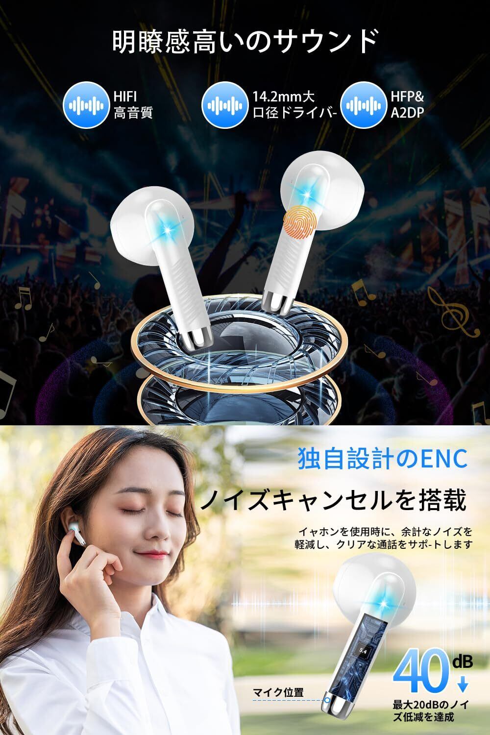 イヤホン bluetooth ワイヤレス【2025最新ブルートゥース イヤホン】Bluetooth5.4 ENC通話ノイズキャンセリングHiFi音質 ブルートゥースイヤホン 長時間再生 自動ペアリング 最大40時間再生タッチコントロール LEDディスプレイ Type-C充電 IPX7防水HiFi小型/軽量 iOS/Android適用 WEB会議通勤/通学/音楽/ゲーム ホワイト