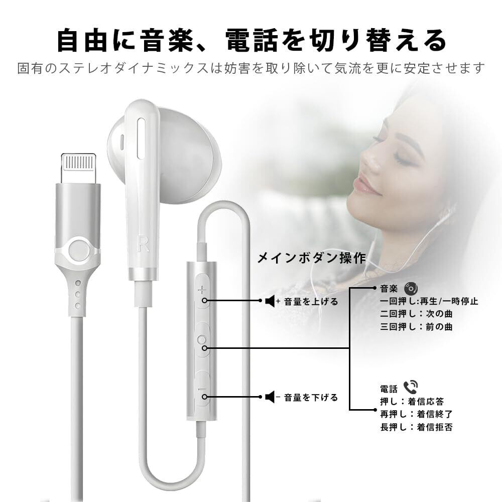 iPhone イヤホン lightning 有線 イヤホン 純正 iPhone/iPad/ipod/ios/Siri対応対応 「Apple MFi認証品 2023極上の新設計」ライトニングイヤホン 音量調節 通話可能 リモコン/マイク付き ステレオイヤフォン