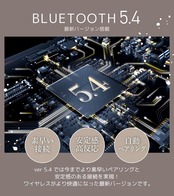 BLUETOOTH 5.4。最新バージョン搭載。今までより素早いペアリングと安定感のある接続を実現。ワイヤレスがより快適になった最新バージョンです。持ち運びにも最適。軽量&コンパクト。持ち運びも楽々で耳への負担も少ない 超軽量タイプイヤホン約 3.5g(片耳)です。