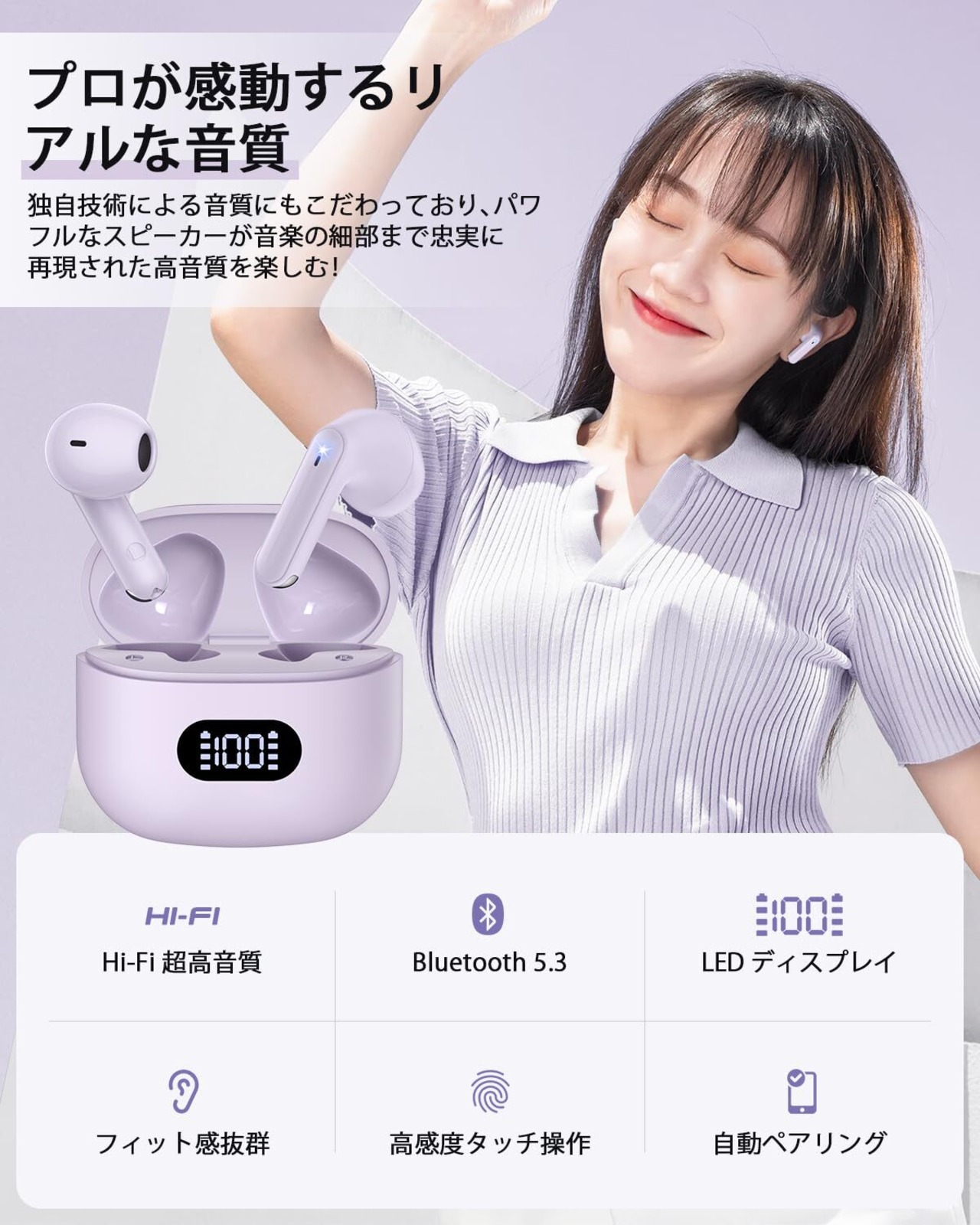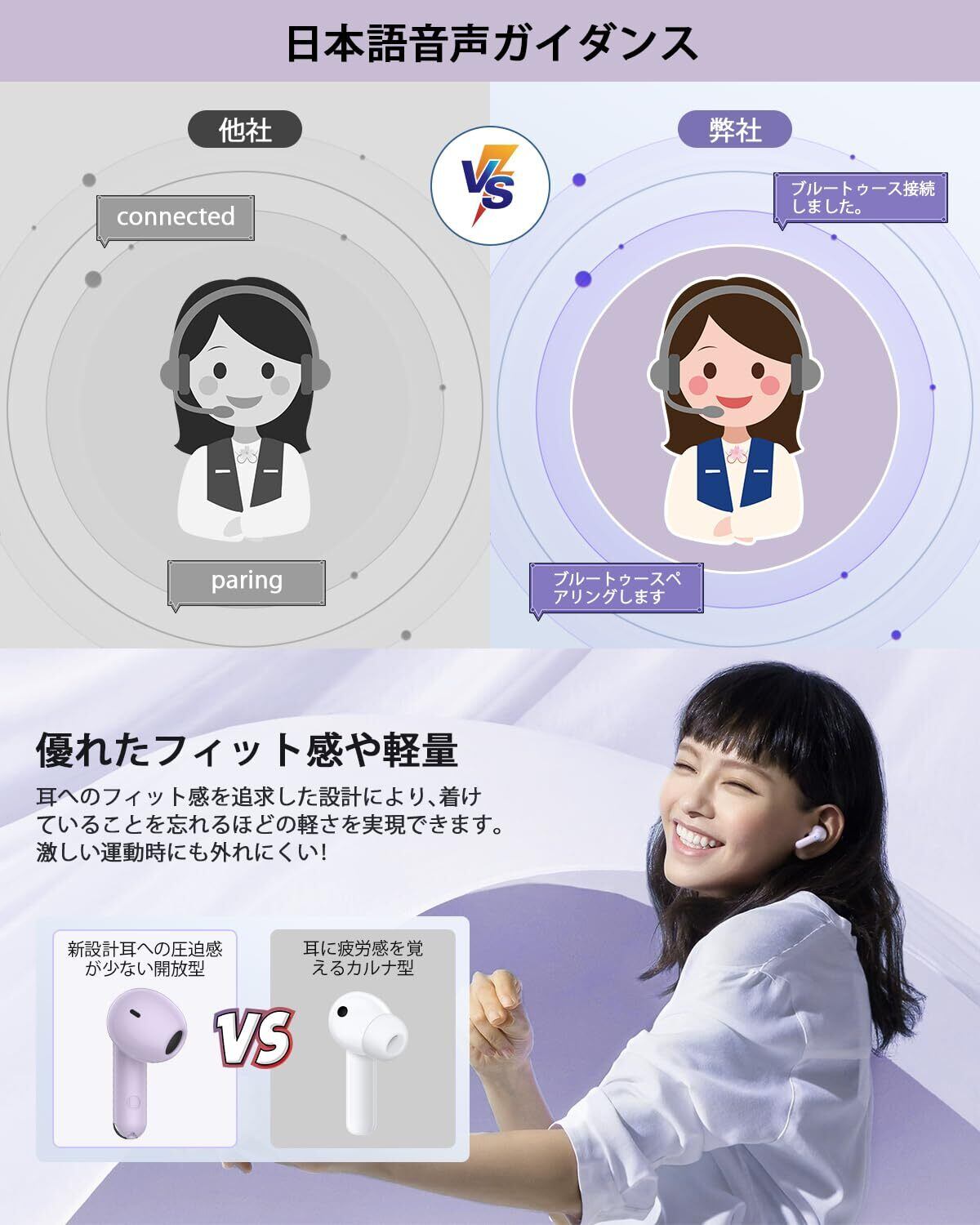 【最先端のbluetooth 5.3技術・日本語ガイダンス】大人気の左右分立bluetoothイヤホンを登場しました!のbluetoothイヤホンは業界最新クラスのbluetooth5.3チップを採用し、現在市場販売中のイヤホンはbluetooth5.1かbluetooth5.2のイヤホンとの比べ、電量低削減できるの上に安定性を保護でき、「音遅延」も減少でき、「通信スピード」はジ従来よりはものすごく早くなります。さらに今回は「日本語音声ガイダンス」も導入します。市販のイヤホンは普遍英語の音声ガイダンスを採用し、英語苦手な方々もいると思います。また、イヤホン使用の年齢層も考え、日本語音声ガイダンスは親切性も溢れていて、老若男女どちらでもわかりやすい楽でこちらのイヤホンを使用できます。「蓋開けたら、瞬間接続」初回使用のみ、手動でペアリングする必要となります。次回では蓋開けたら、自動的に接続したのデバイスを検索し、ケースから取り出したら使用可能です。ペアリング反復接続の手間を抜き、便利で使用できます。