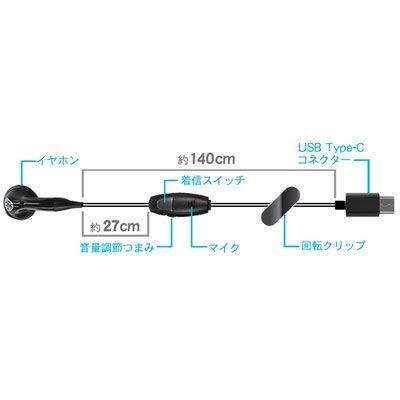 φ3.5イヤホン端子口がない端末用の片耳用イヤホンマイク。Type-C端子専用。イヤホンの受話音量を調節できる音量調節つまみ付き。