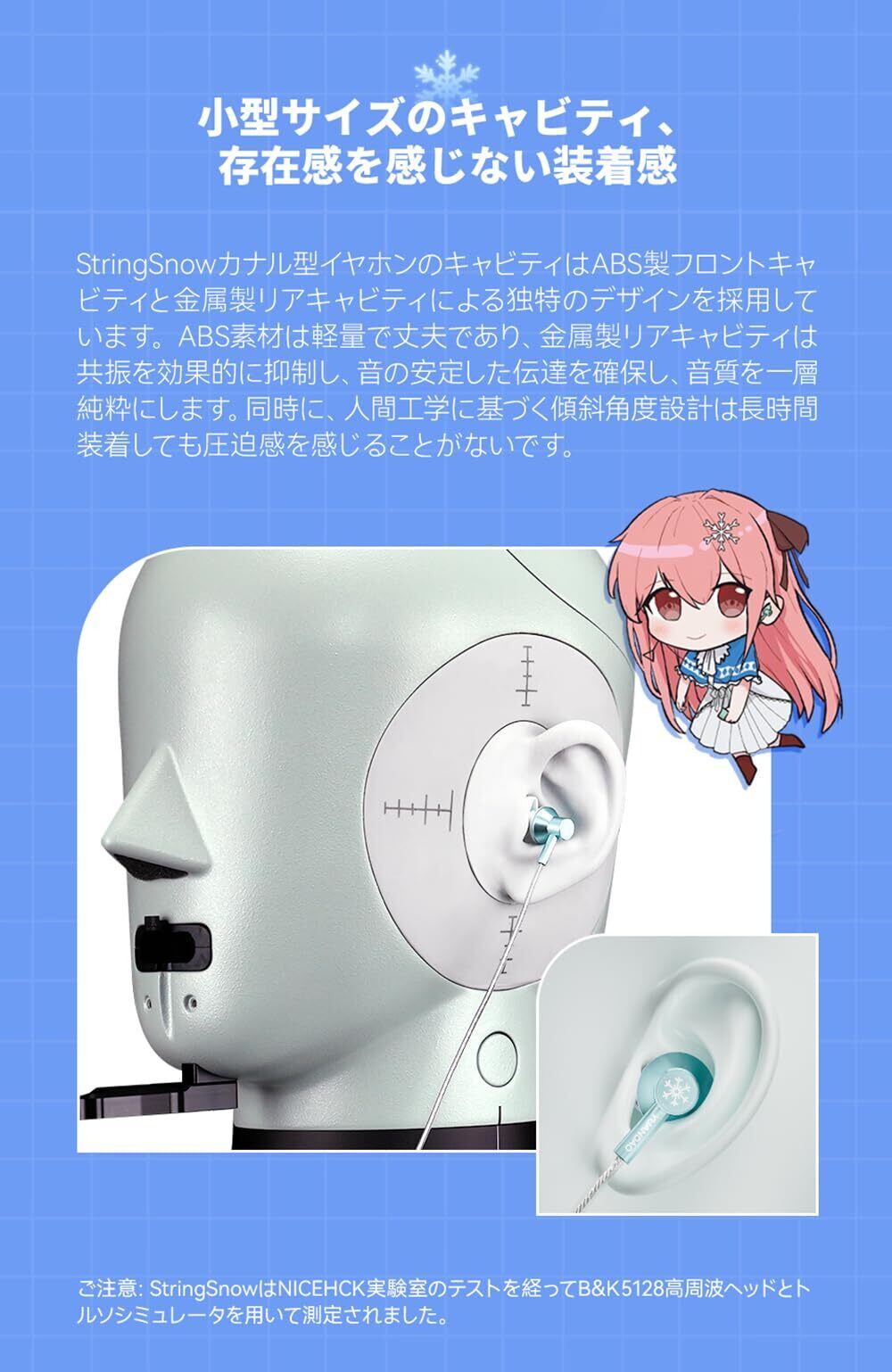 【小型サイズ、快適な装着感】弦雪 StringSnowカナル型イヤホンのキャビティはABS製フロントキャビティと金属製リアキャビティによる独特のデザインを採用し、軽量で丈夫で音を安定に伝達できます、人間工学に基づくデザインにより長く着用しても疲れなく、通勤、スポーツやフィットネス、あるいはレジャーや娯楽の場面で利用していただけます