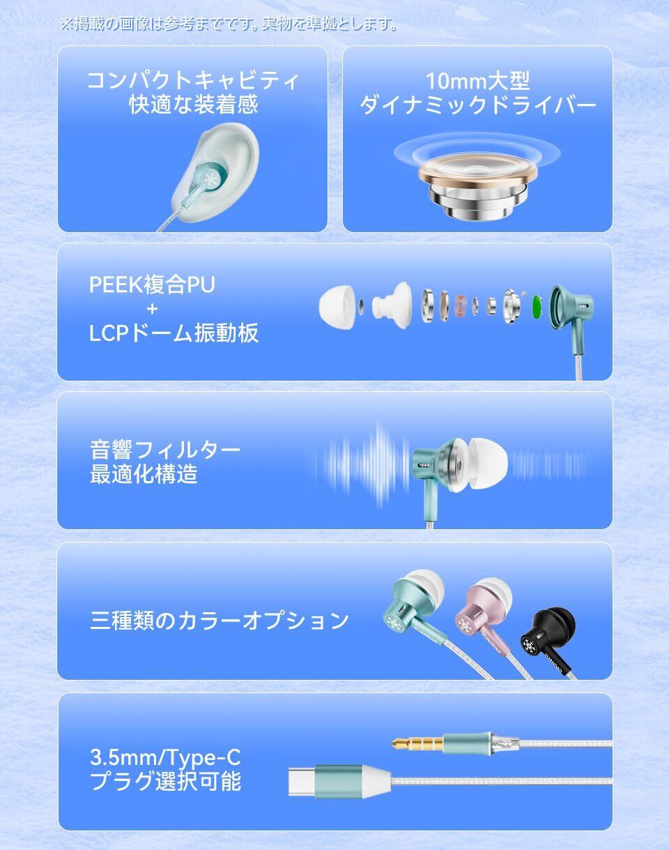【3.5mm/Type-C選択可能、ブラック/ミントグリーン/ピンク選択可能】弦雪 StringSnowカナル型イヤホンは3.5mmプラグマイク付き/マイクなし、Type-Cマイク付き選択可能、カラーはブラック、ミントグリーン、ピンク選択可能です、市場のほとんどの再生機器に対応でき、Type-C仕様にはDACデジタルデコードチップが内蔵されており、最大32bit/384kHzのサンプリングレートをサポートします
