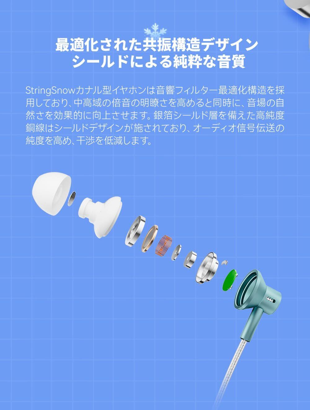 NICEHCK 弦雪 StringSnow カナル型イヤホン 10mmダイナミックドライバー 1DD 有線 PEEK複合PU+LCPドーム振動板 共振構造最適化デザイン 軽量 3.5mmマイク付き 銀箔シールド層高純度銅線 三種類のカラーオプション 32bit/384kHzのサンプリングレート hifi音質 中華 (ミントグリーン3.5mmマイク付き) | kki