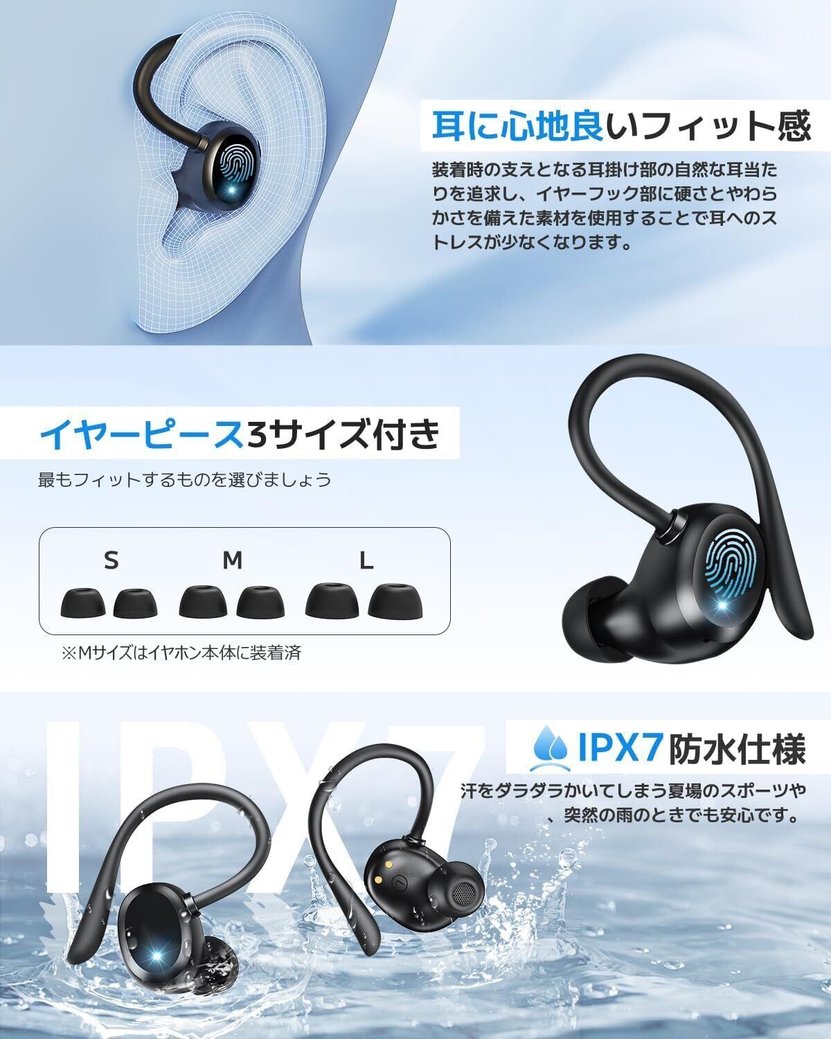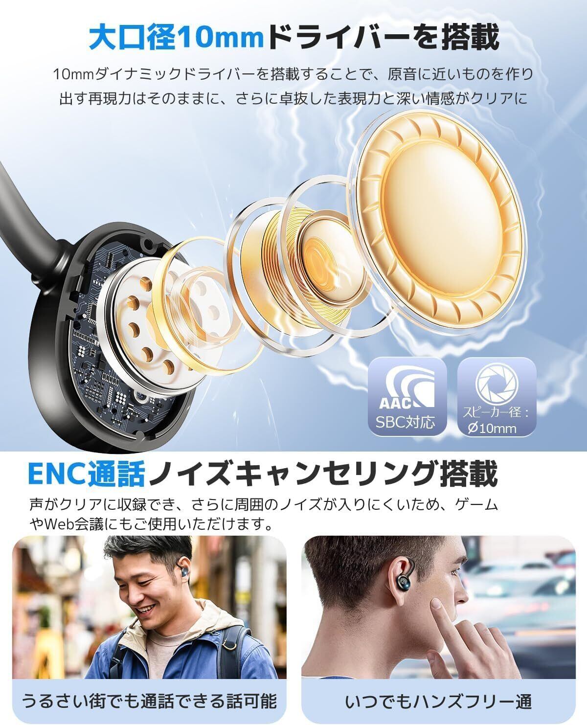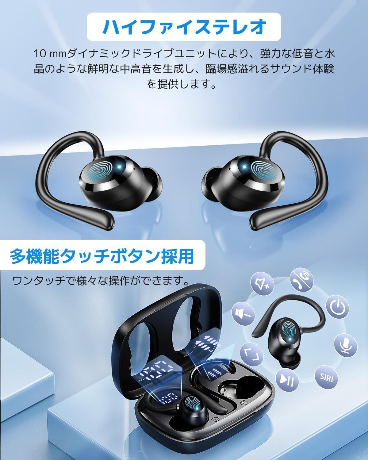 ワイヤレスイヤホン イヤホン Bluetooth 耳掛け式 完全ワイヤレス 蓋を開けたら瞬間接続 10mmドライバー(ブラック)