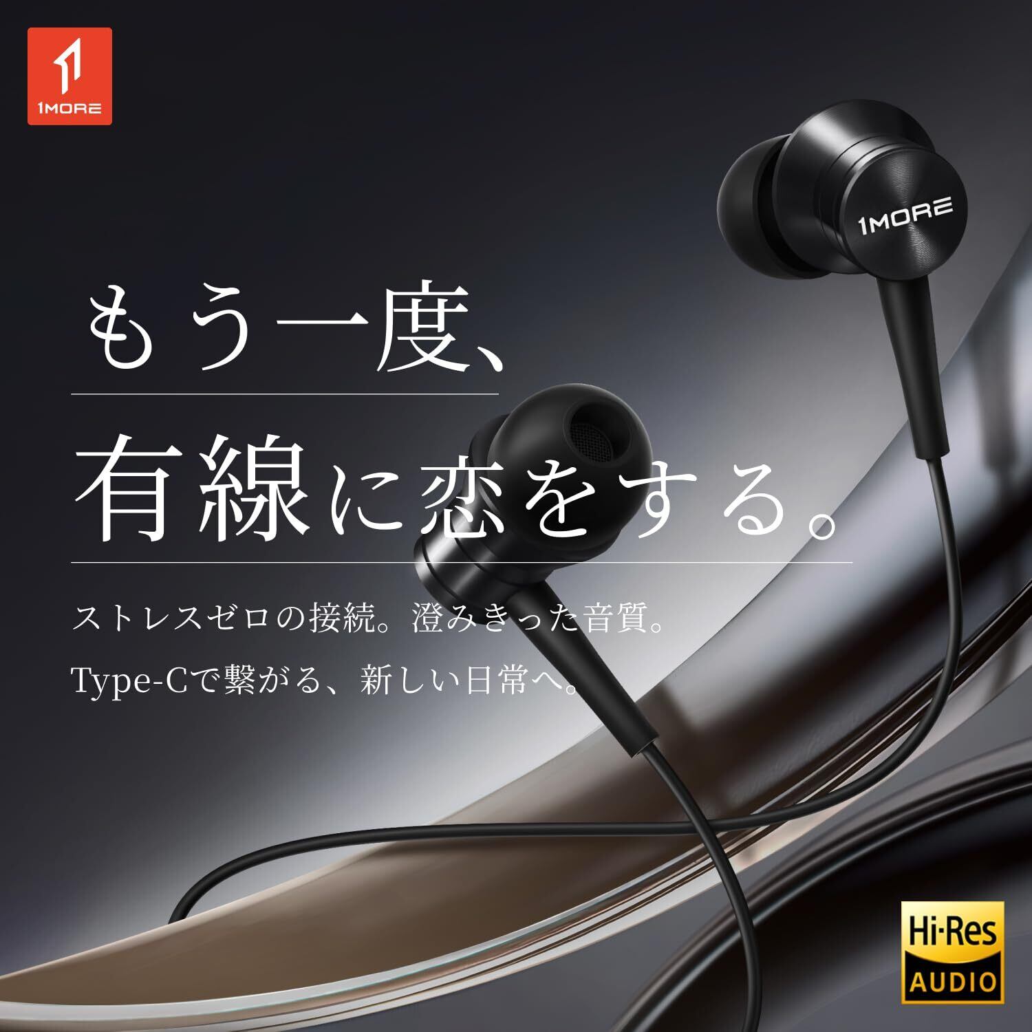 1MORE 有線ハイレゾイヤホンPiston P20 Type-C 有線イヤホン ワンタッチミュート 編み込みケーブル ハイレゾ認証 通話 録音 (グレー)