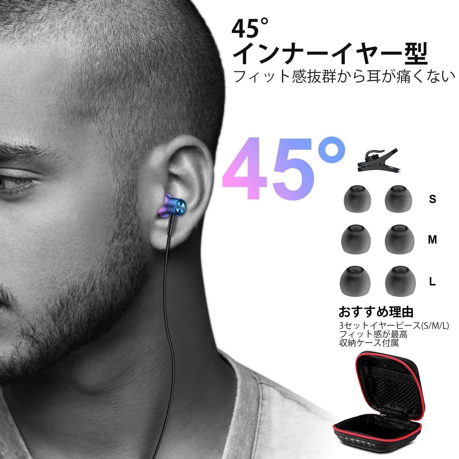イヤホン 有線 マイク 付き 3.5mm カナル型 対応iPhone/iPad/iPod/Android PC 用 有線イヤホン 3.5mmイヤホンジャック 通話可能 リモコン 音量調節 対応AQUOS/Xperia/xiaomi Redmi/OPPO/PS4 PS5 イヤフォン 磁気 zoom会議テレワーク おしゃれ かわいい 収納ケース付き グラデーションパープル