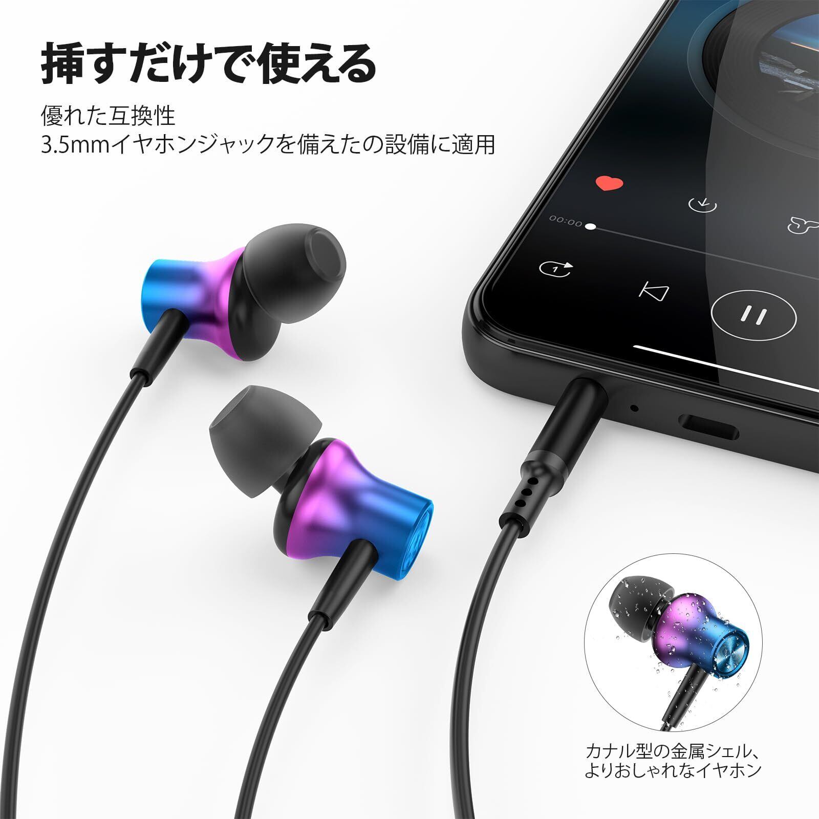 イヤホン 有線 マイク 付き 3.5mm カナル型 対応iPhone/iPad/iPod/Android PC 用 有線イヤホン 3.5mmイヤホンジャック 通話可能 リモコン 音量調節 対応AQUOS/Xperia/xiaomi Redmi/OPPO/PS4 PS5 イヤフォン 磁気 zoom会議テレワーク おしゃれ かわいい 収納ケース付き グラデーションパープル | kki