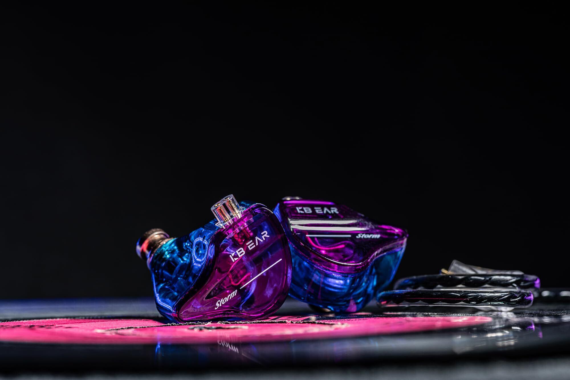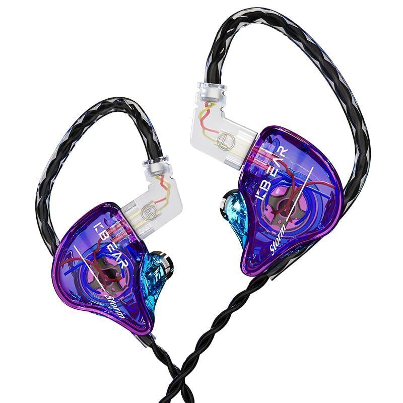 KBEAR Storm イヤモニ 有線 有線イヤホン カナル型 イヤフォン 耳掛け インイヤー モニター ノイズキャンセリング ゲーミングイヤホン 10mmダイナミックドライバ/PU+PEEK/3.5mmプラグ/前例のない聴覚体験/小型軽量設計/りケーブル可能/重低音/HIFI音質 配信/通勤/通学/スポ一ツ/音楽モニター用(青紫・マイクなし)