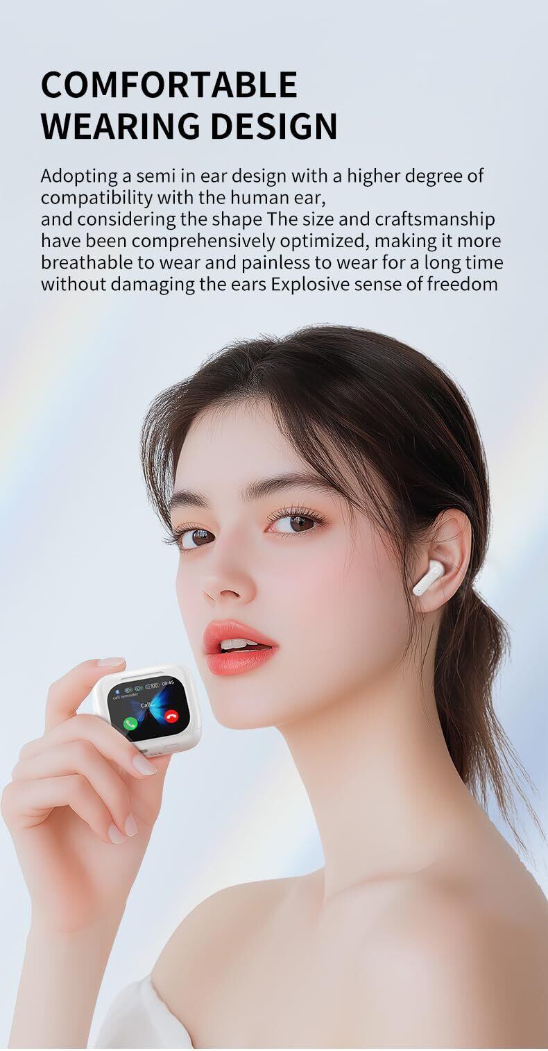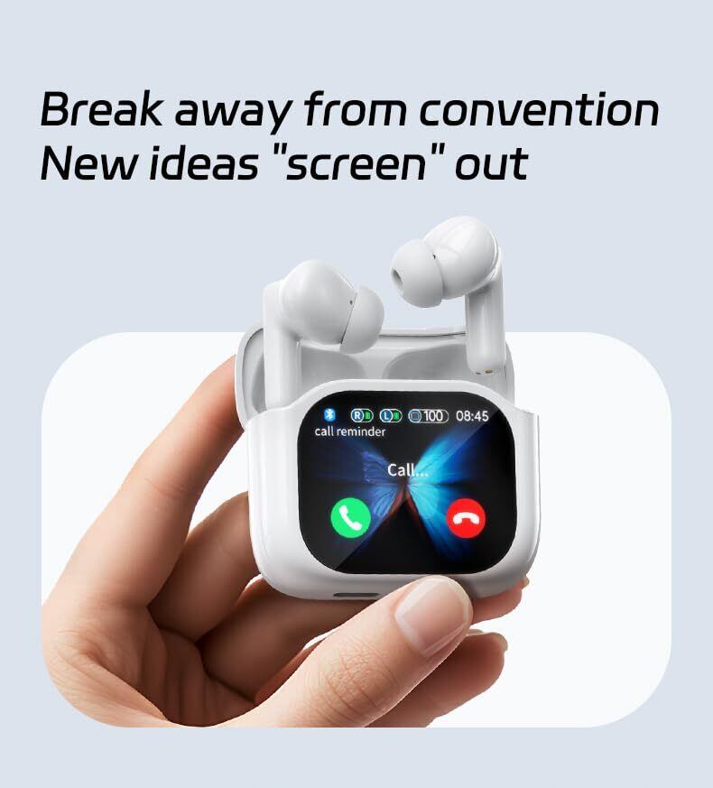 【LEDディスプレイ&軽量設計】一目でわかりやすいLEDディスプレイのデザインで、左右イヤホン bluetoothの充電状況が確認できるし、充電ケースの残量にも簡単に確認できます。フルカラーのスマートスクリーンは携帯電話を必要とせず、タッチするだけで操作できます。エレガントなインターフェースは見た目にも美しく、便利な操作であらゆる機能を簡単に探索して楽しむことができます。Bluetooth経由で携帯電話を接続し、携帯電話のカメラを開いて、充電ボックス画面の写真ボタンをクリックしてリモートで写真を撮影します。探索できる機能が他にもたくさんあります!手のひらサイズのイヤホン、充電ケースも40.8gと小型なので、小さくて軽くて、小さなカバンにもすっぽり収まるし、外出時にポケットに入れて、セットでどこに持ち歩いて邪魔にならず、快適に過ごせるコンパクトなデザインです。