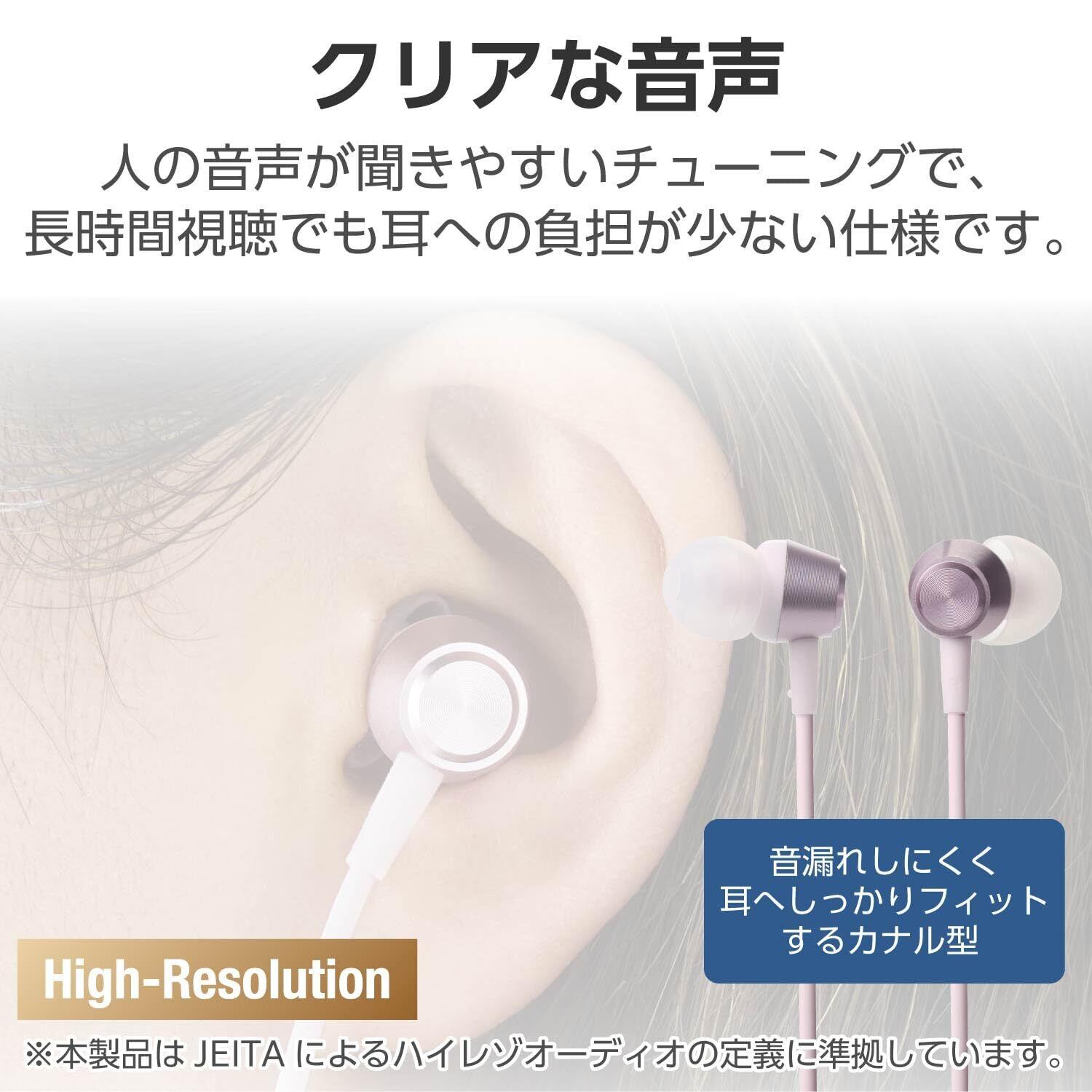 耳にしっかりフィットし音漏れしにくいカナル型です。