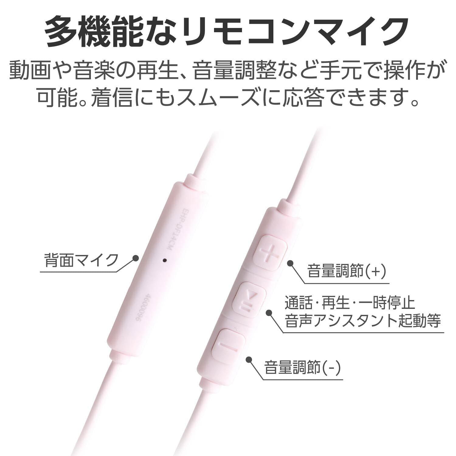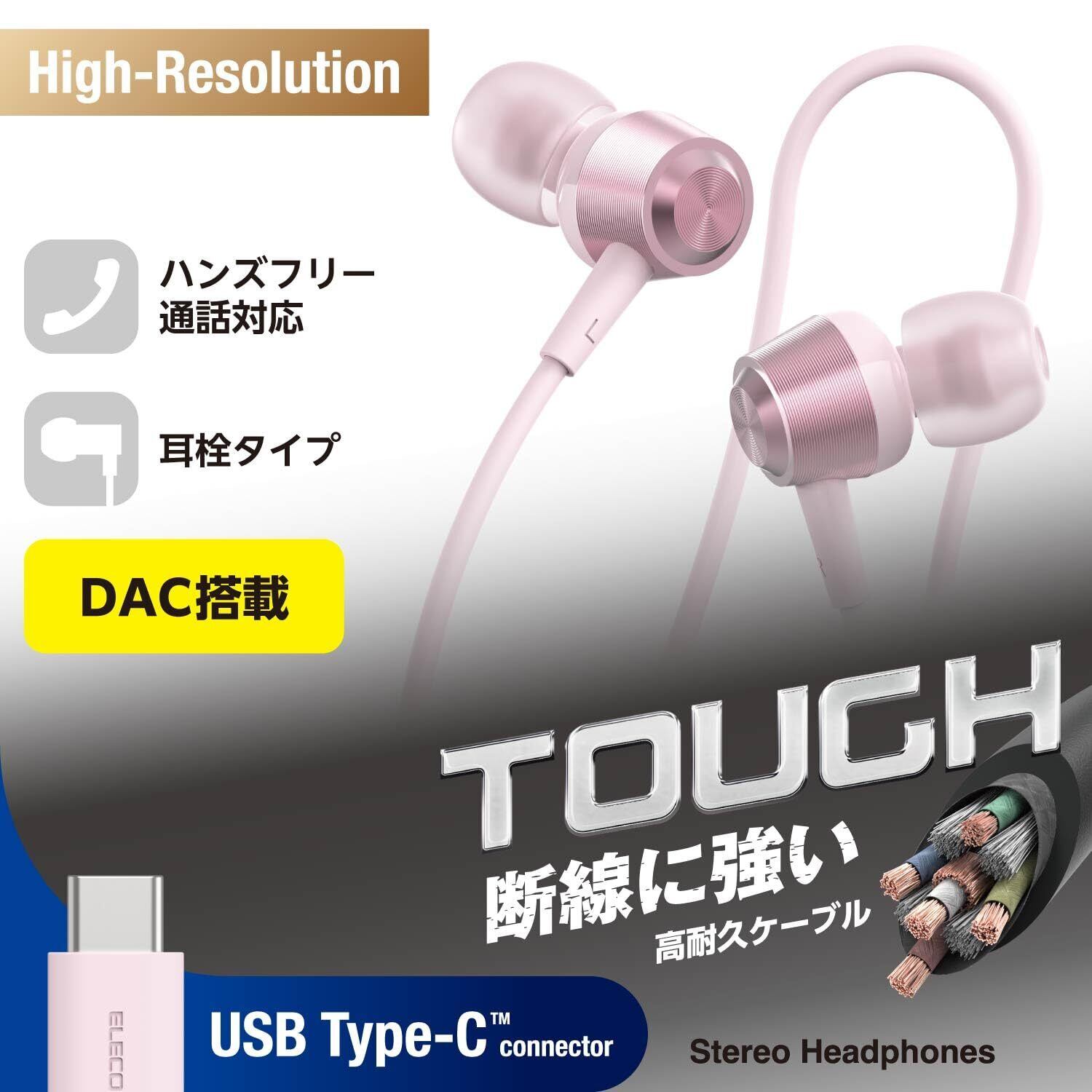 エレコム イヤホン Type-C 有線 カナル型 高耐久ケーブル 断線しにくい 音声と映像のズレなし 【再生/音量調整コントローラー付き】 [ iPhone 16e / 16シリーズ 対応 ] ピンク EHP-DF14CMPN