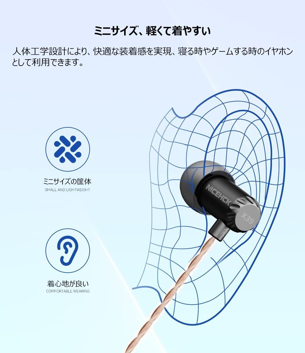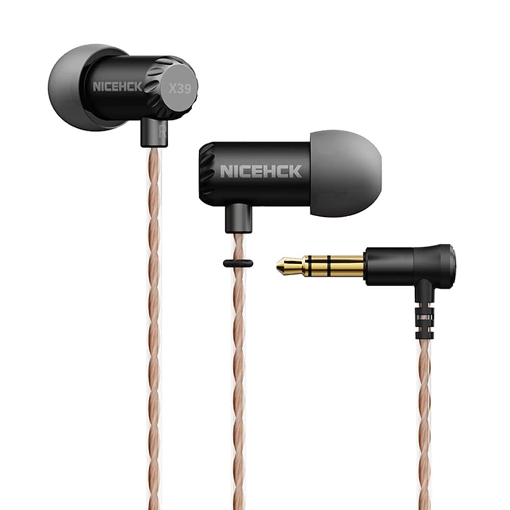 NICEHCK X39 6mmダイナミック型1基 カナル型イヤホン 1DD チタンコート振動板 3.5mmプラグ ミニサイズの筐体 スリープイヤホン メタルハウジング 高遮音性 HIFI 純銅銀メッキケーブル付属 (マイクなし, ブラック, 無酸素銅線) | kki