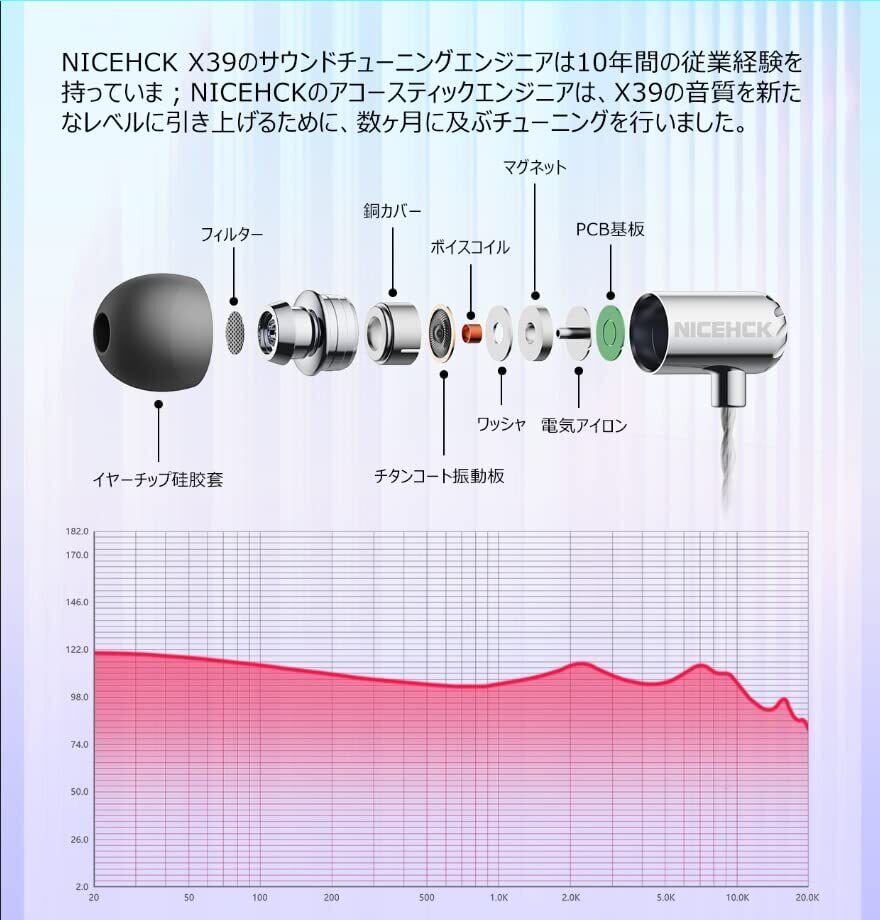 - X39イヤホンのドライバーユニット:6mmダイナミック型(チタンコート振動板);ご注意ください:このパックには、二次キーホルダーは含まれていません