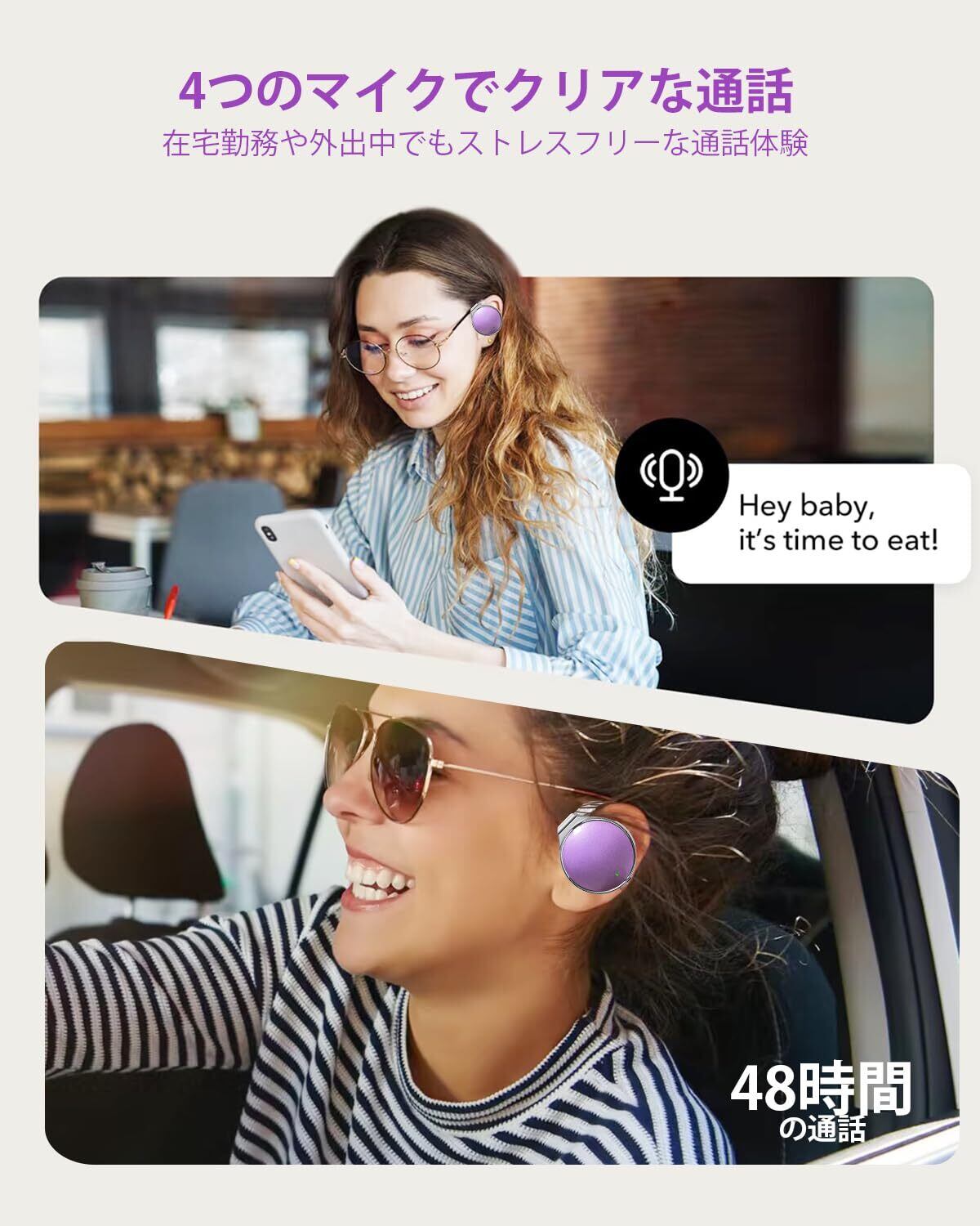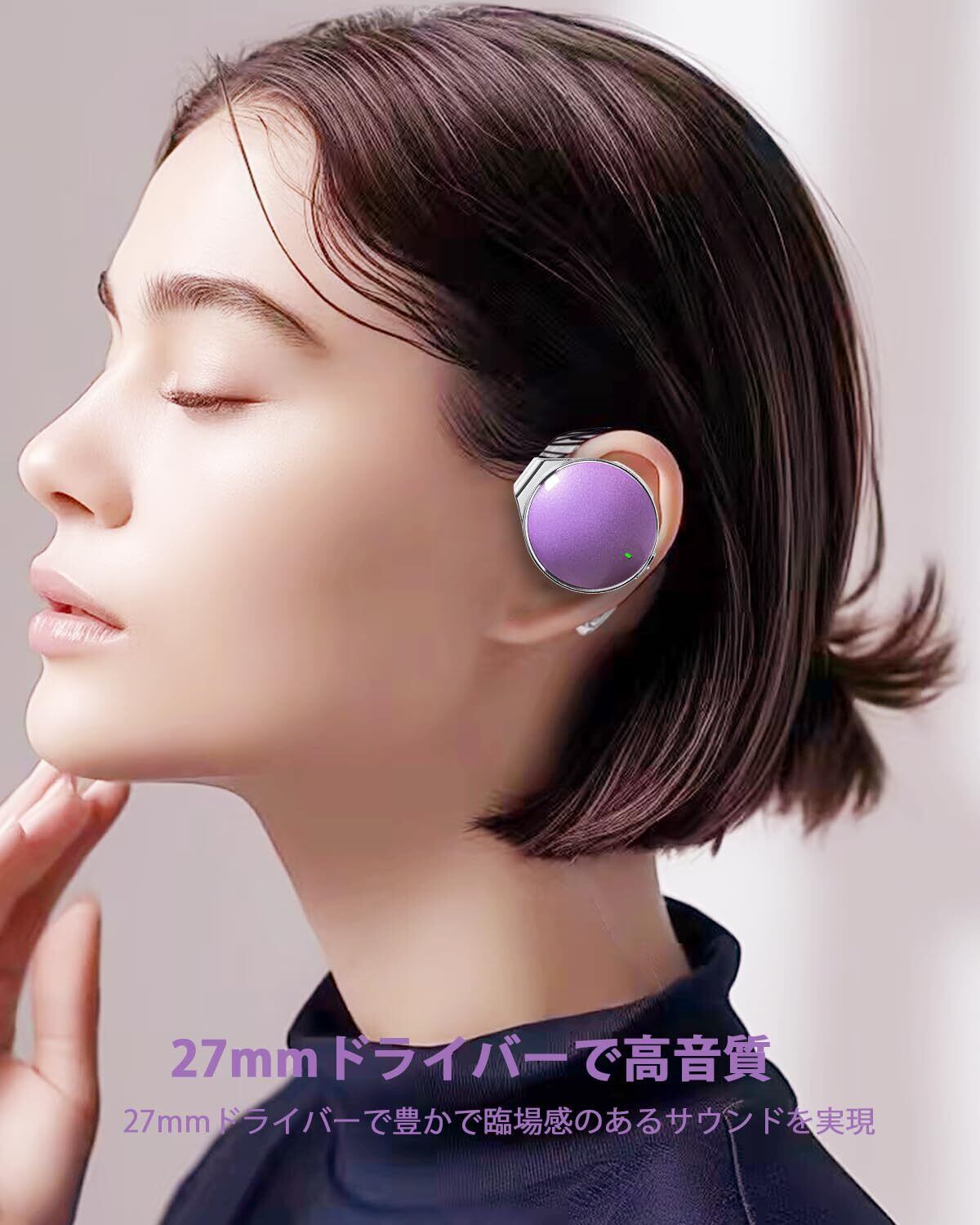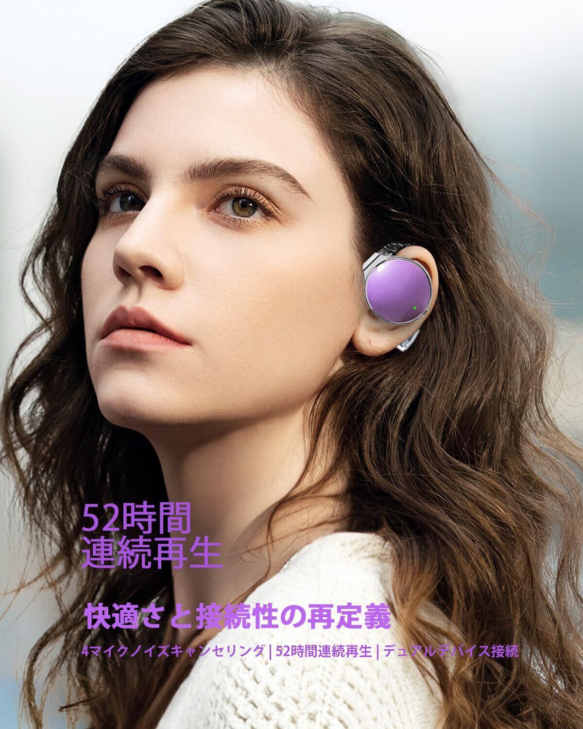 無線耳掛け式イヤホンBluetooth 5.4 ノイズキャンセリングオープンイヤーイヤホン ワイヤレス 水滴型クリップ付きスポーツ オンイヤー 開放型Bluetooth イヤホン 4マイク ハンズフリー通話 小型/軽量ヘッドホン 長電池寿命