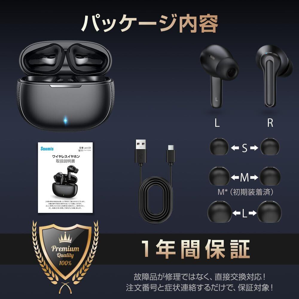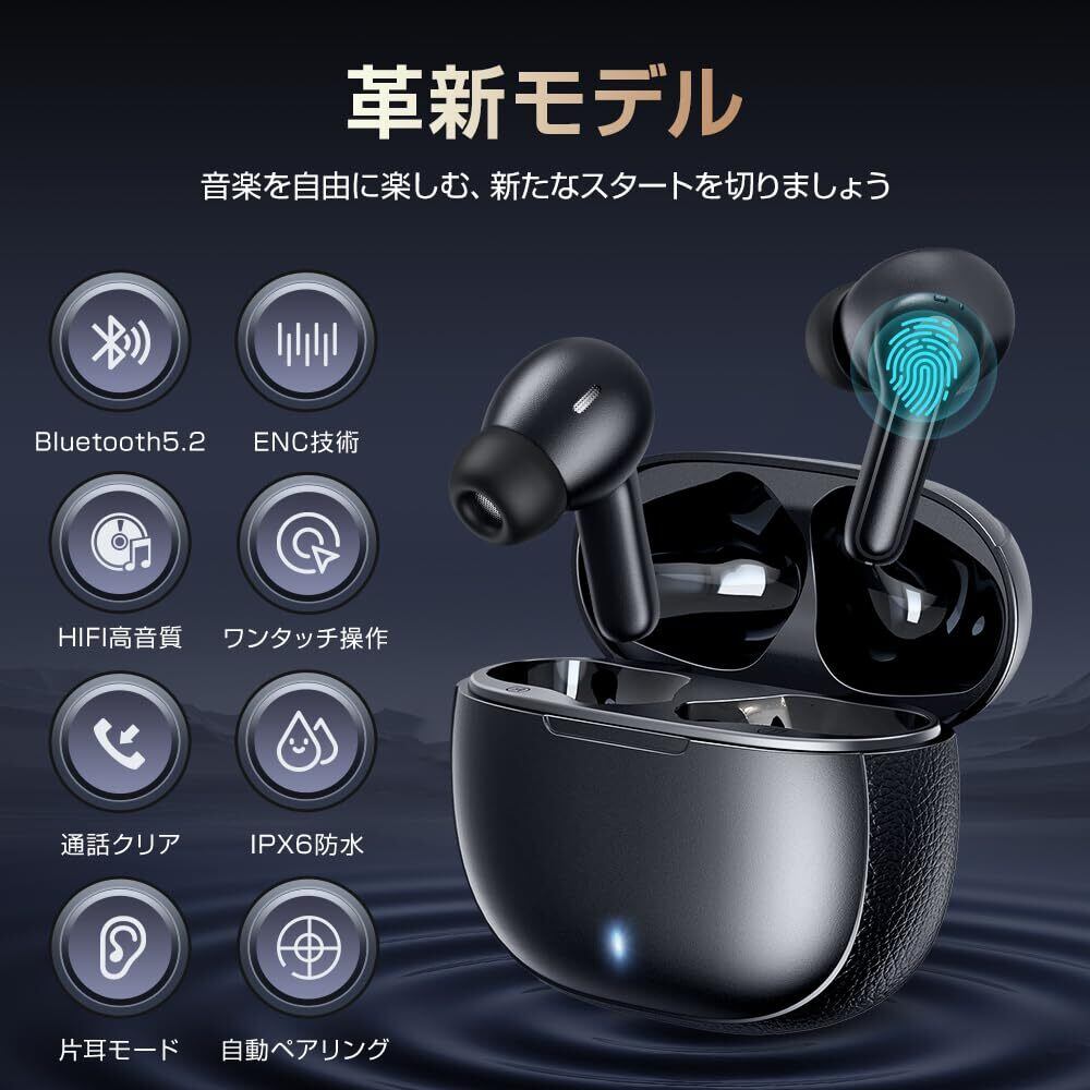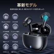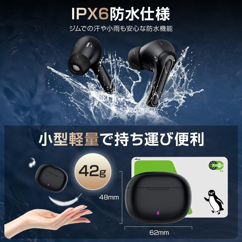 イヤホン bluetooth ワイヤレスイヤホン 【ANC搭載・ノイズ低減・IPX6防水】 ノイズキャンセリング ブルートゥース 防水 無線 イヤフォン 通話可能 超軽量 タッチ操作 ENC通話 Hi-Fi音質 低遅延 片耳 両耳 iPhone Android iPad適用 スポーツ/通勤/通学/WEB会議 (ブラック)