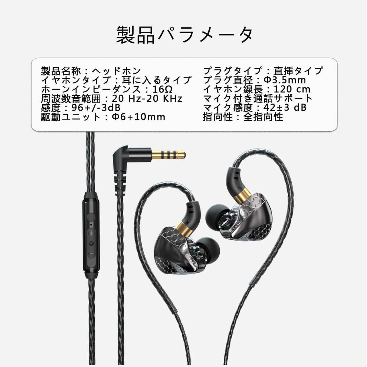 イヤホン 有線イヤホン マイク内蔵 通話可能 マイク付き カナル型 遮音性 音漏れ防止 イヤフォン 通話可能 人間工学設計 快適な装着感 軽量化 音量調整 曲戻り/送り 音楽鑑賞/ゲーム/作曲/仕事/通学/通勤/ジム/テレワーク プレゼント ギフト/3.5mmジャック 男女兼用 (ブラック)