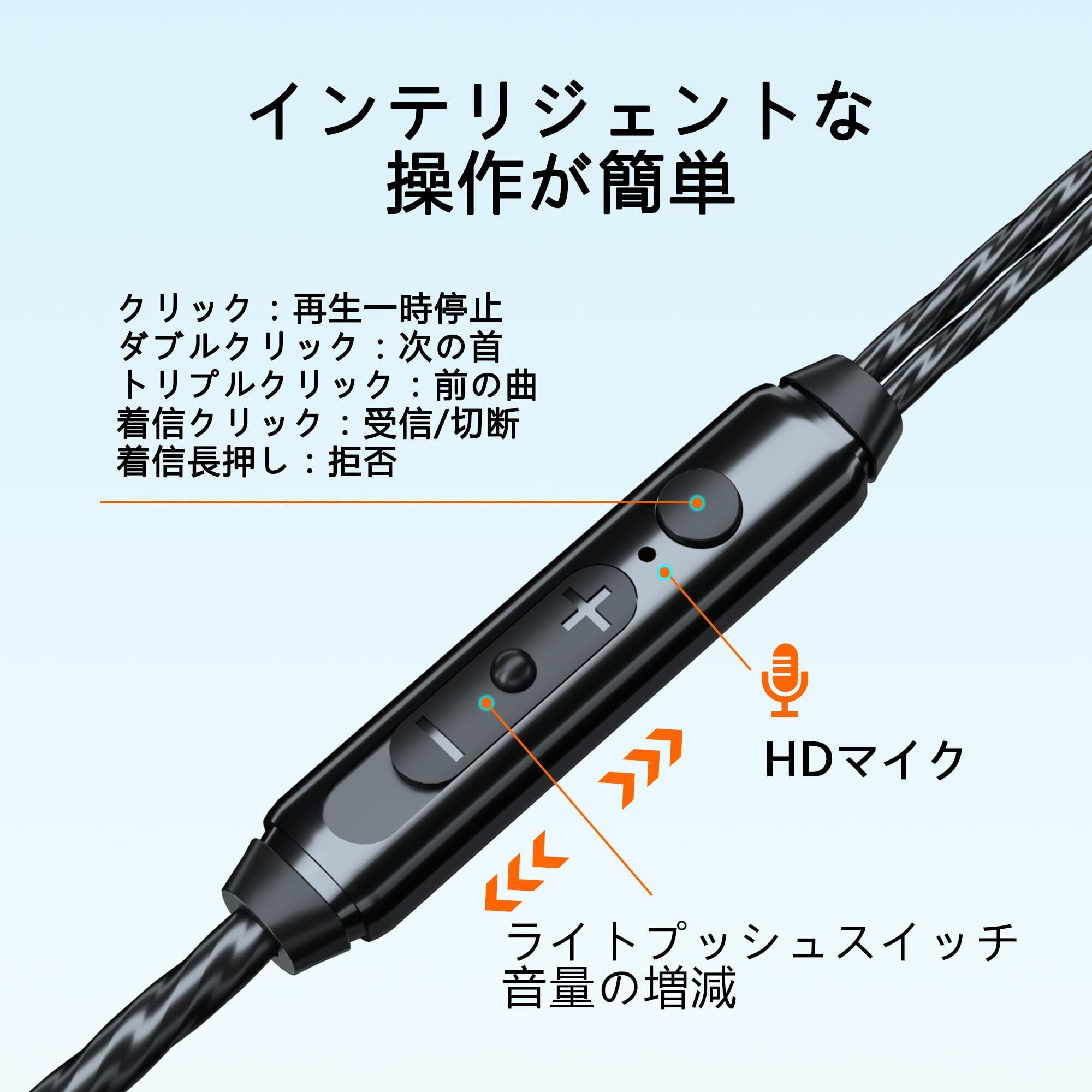 【優れた耐久性】:柔らかい高弾力性TPEを採用し、中身は銅線+繊維、有線イヤホンが最も断裂しやすい端子の部分をチューブで強化して、耐久性を向上し断線防止しています。高品質TPE素材はケーブルの耐久性を提供して、絡みにくいになります。