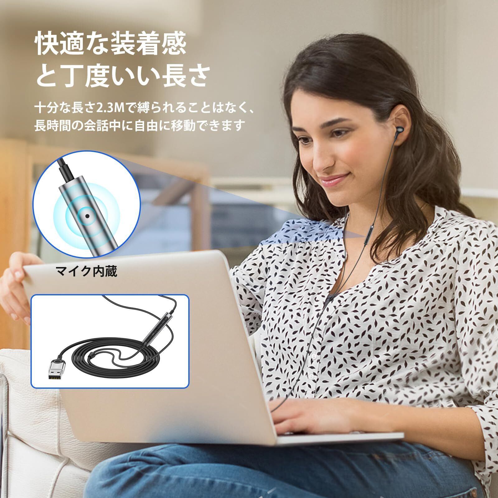 軽量化により快適な付け心地:マイク付きusbイヤホンは僅か40gの重量で以前のヘッドセットよりい軽いとコンパクト、柔らかいイヤーキャップを採用して快適性を追求した人間工学カナル型設計で遮音性が高く耳にフィットする,音声をしっかり聞き取れ、喧騒の空間にいてもクリアな音声を楽しめます。日常ビジネスやノートPC仕事に最適!さらに、イヤホンケーブルの長さは2.3m、モニターとの距離がある場合や座席を移動する必要がある場合などでも簡単に対応しています。手軽に着脱できるし、全く邪魔にならない!