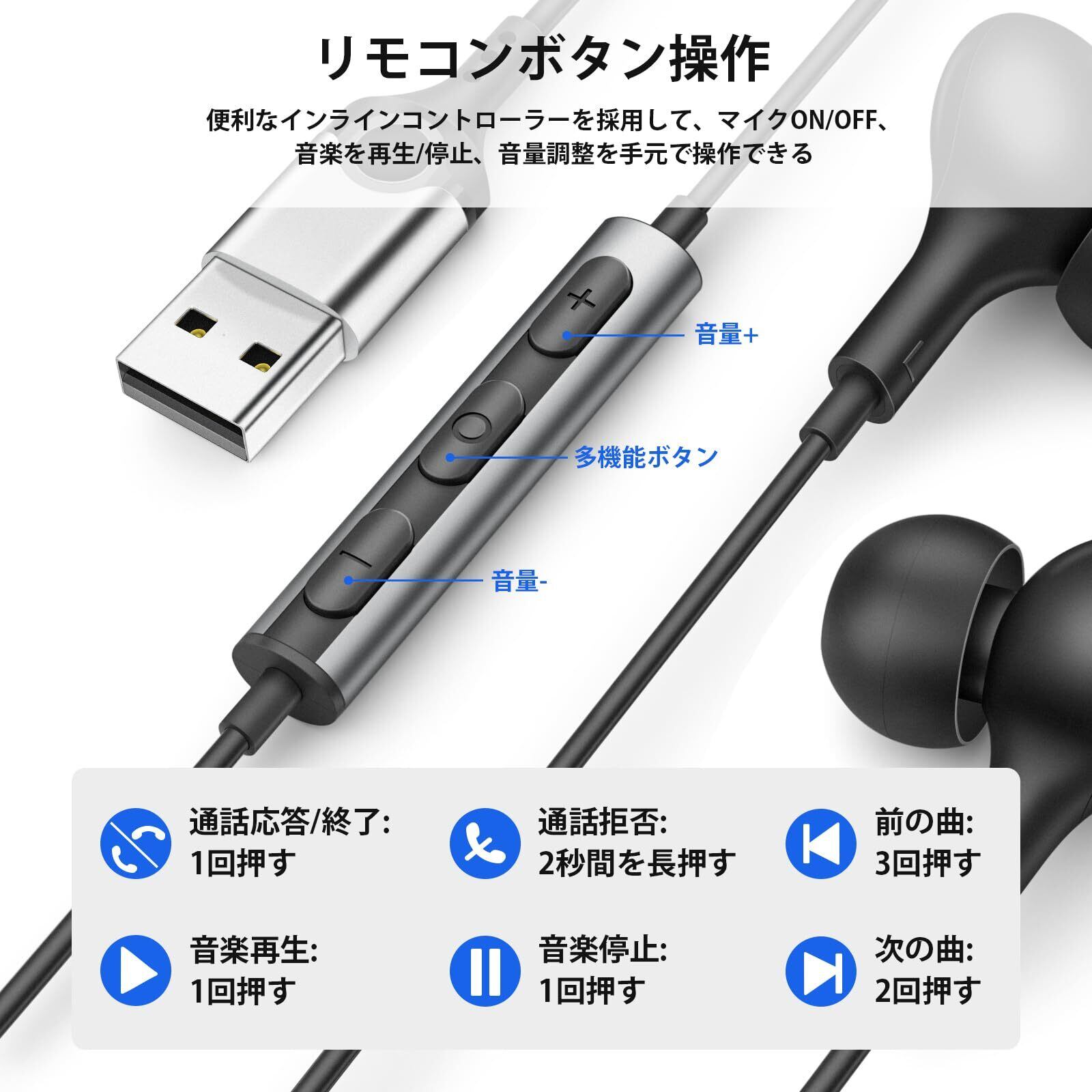 HIFI音質・マイク通話可能:のイヤホン usb 有線には最新DACチップと業界最大10mm大直径ダイナミックドライバーを搭載により、音に対しての解像度が向上させて、低音から高音域までリアルな立体音や臨場感音楽を再現します。また、HDマイクロフォンと音量調整機能の付いたボイスコントロールボタン搭載し、相手にも高音質で音声が届き、手元で音量を調節できるからストレスフリー。オンラインゲーム、テレワーク/Web会議、SNS、ドラマ・映画鑑賞、音楽再生などに利用だきます。