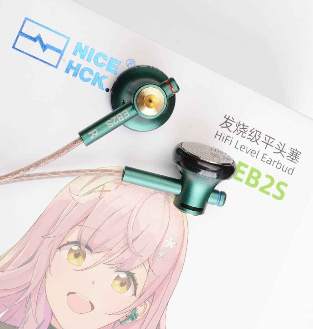 NICEHCK EB2S 15.4mmダイナミックドライバ インナーイヤー型イヤホン 日本LPC振動板 1DD シンプルでクラシックなデザイン アルミニウム合金筐体 3.5mmバランスプラグ 高純度銅ケーブル付属 上位音質 HIFI 高忠実度 (緑 マイクなし4.4mm) | kki