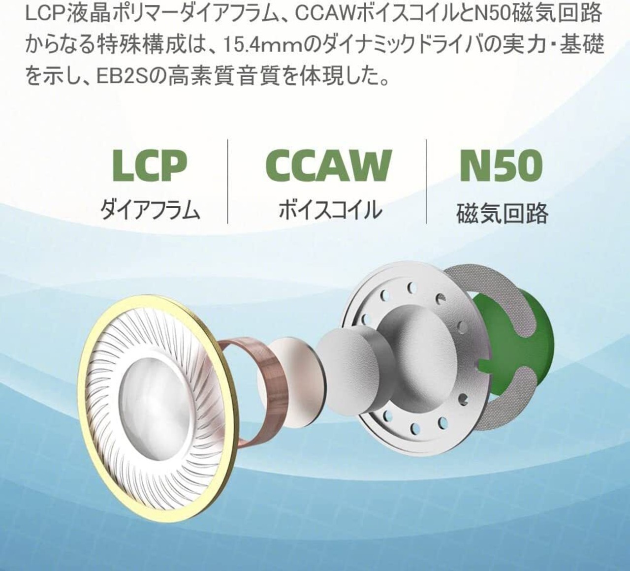 - 【上位音質】EB2SはEB2のアップグレード版です;LCP液晶高分子振膜、CCAWボイスコイルとN50磁路からなる特殊構成は、15.4mmの動圏の実力・基礎を示し、EB2Sの高素質音質を体現した;様々な厳しい信頼性テストに合格しています、装着感ともに大満足