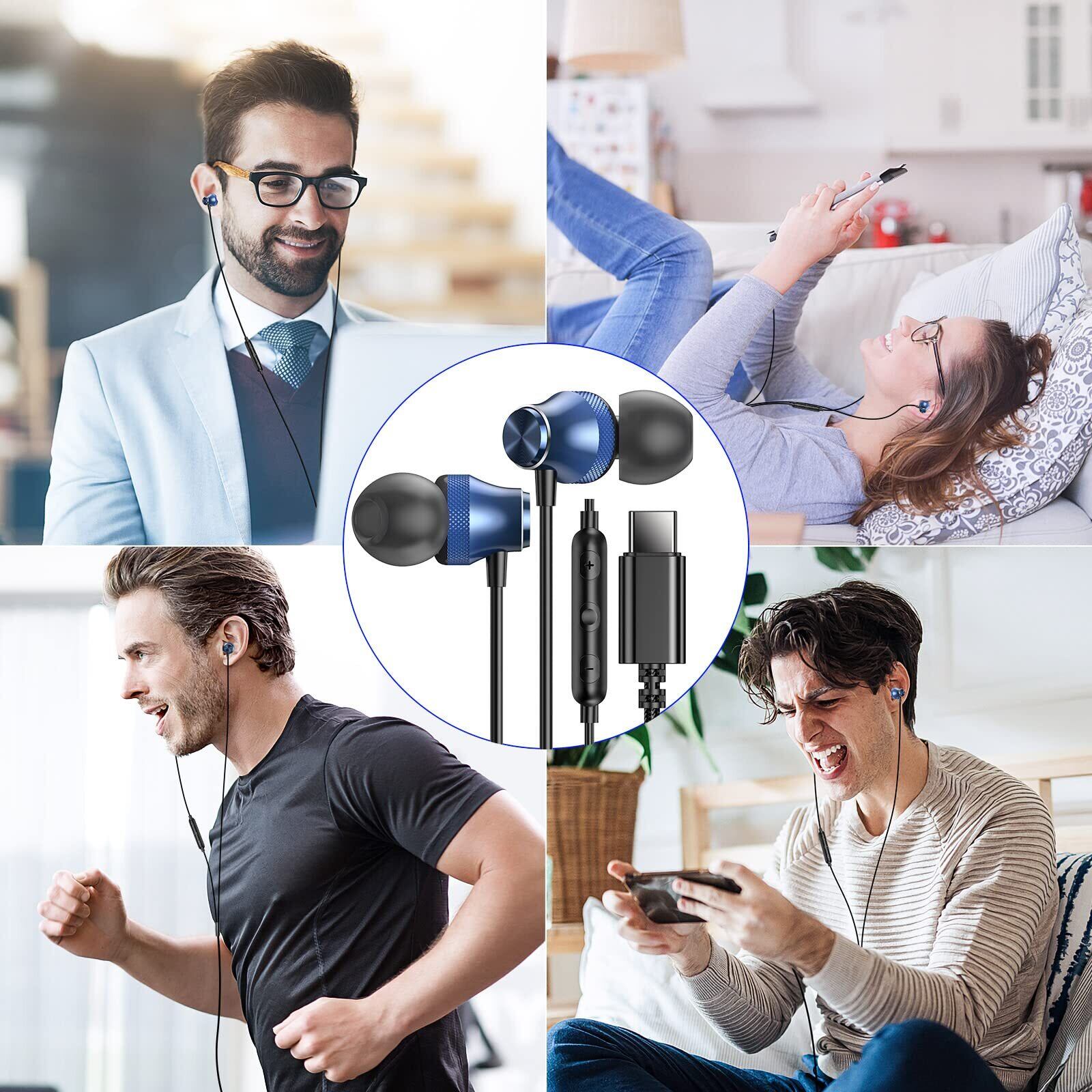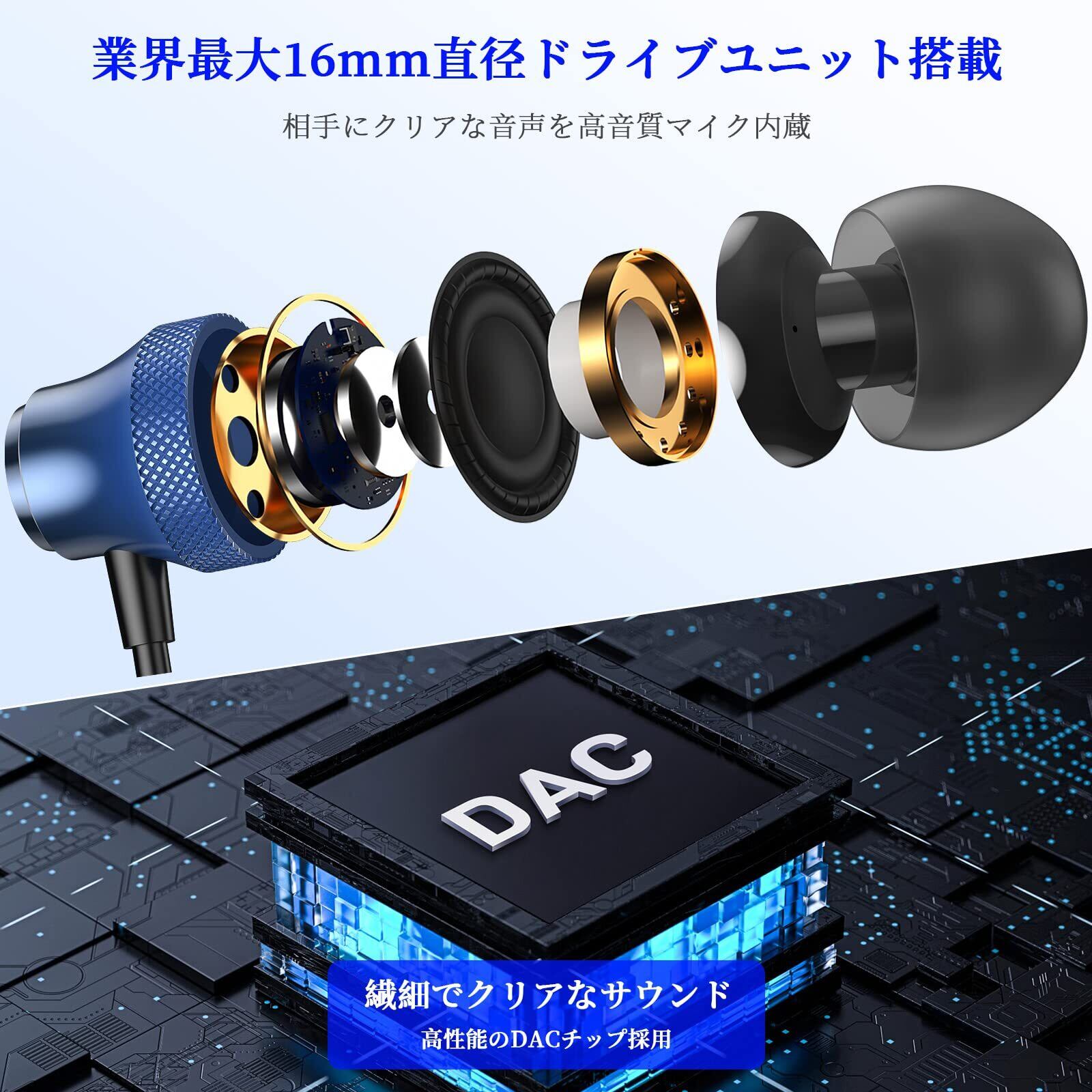 タイプc イヤホン 有線 通話可能 対応iPhone16/iPhone 15/iPad10 Air 4 5 mini 6 10世代 対応Galaxy S22 S23 S24/Google Pixel 8a 7a/Xperia/AQUOS/OPPO/Redmi/xiaomiなど機種 マイク付き DACチップ HiFi音質 Type C 有線イヤホン カタル型 重低音 音量調節 黒藍色