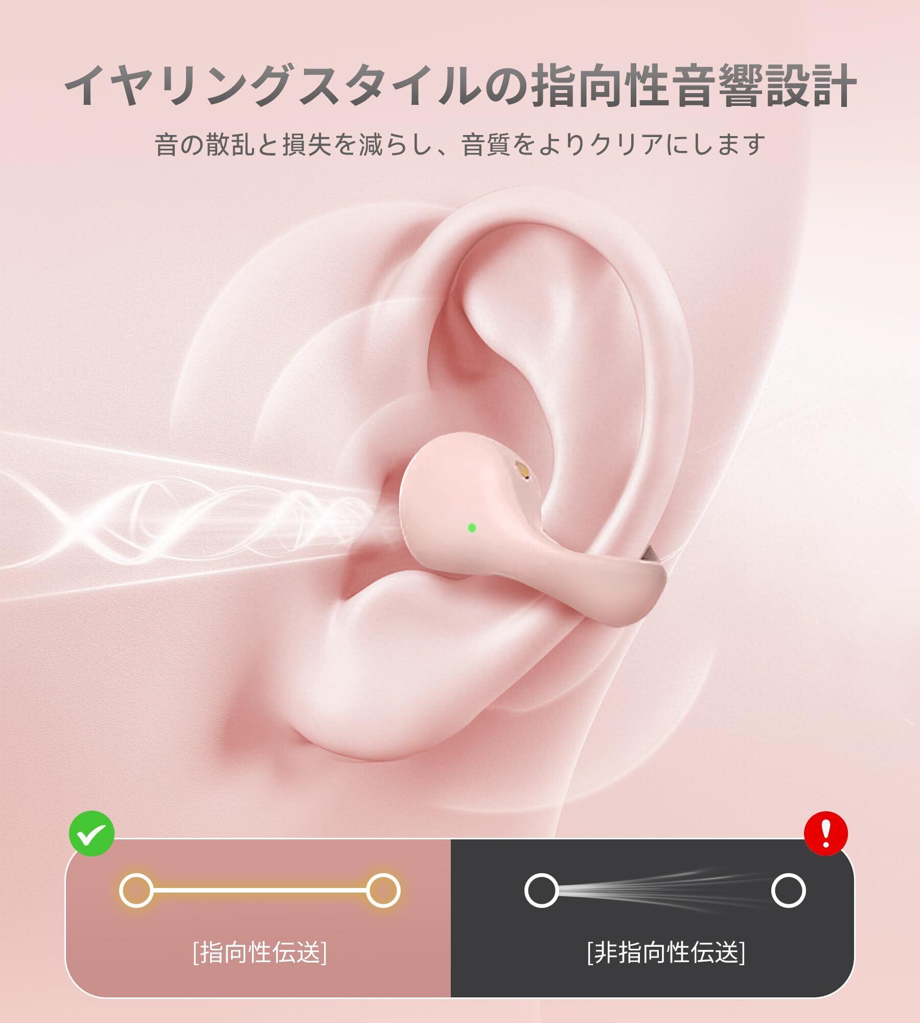 King Lucky イヤーカフ型ワイヤレスイヤホン|オープンイヤー設計|Bluetooth5.3対応|IPX4防水|マイク内蔵|急速充電|音漏れ防止|CVC通話対応|携帯空気伝導|日本設計|耳挟み式|骨伝導技術革新|Hi-Fi 長時間使用可能(ピンク)