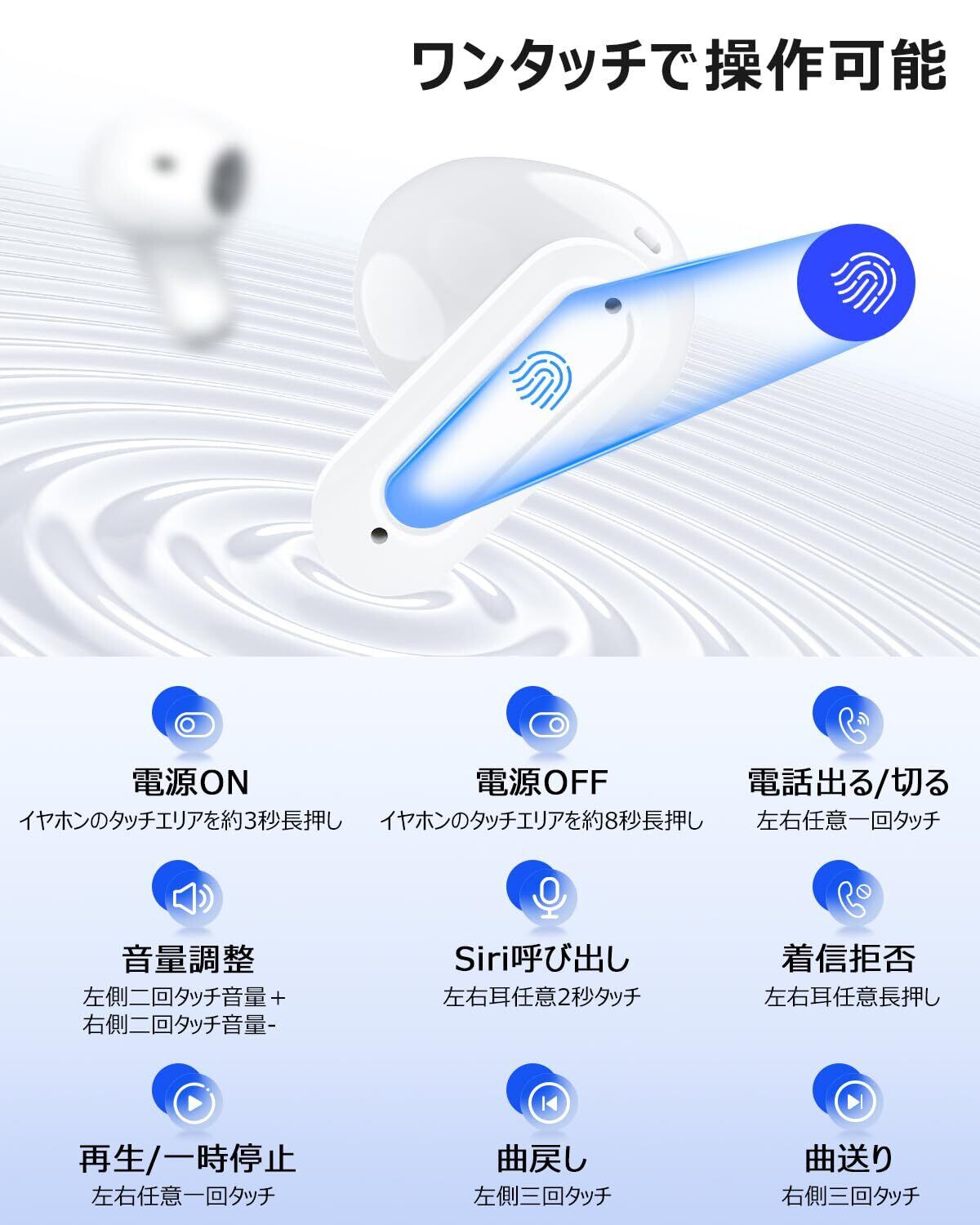 【高感度タッチ操作·多機能·アフターサービスに安心】機能性に優れたタッチ操作が魅力です。音楽の再生/一時停止、着信の応答/終話/拒否、電源ON/OFF、曲送り/曲戻し/音量調整、Siri/音声コマンド起動などの操作が実現されます。本製品SAMONIC Bluetoothイヤホンの期間はご購入日より24ヶ月です。期間中に問題が発生した場合、お気軽にお問い合わせください、早速対応させていただきます。