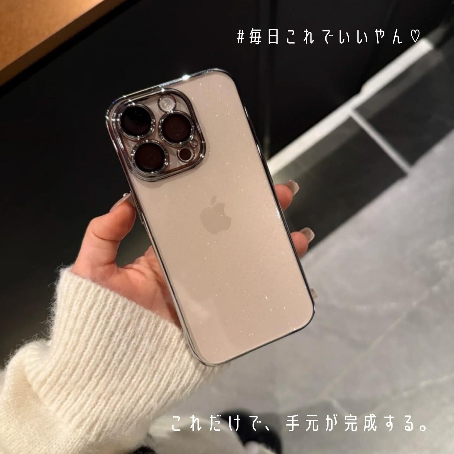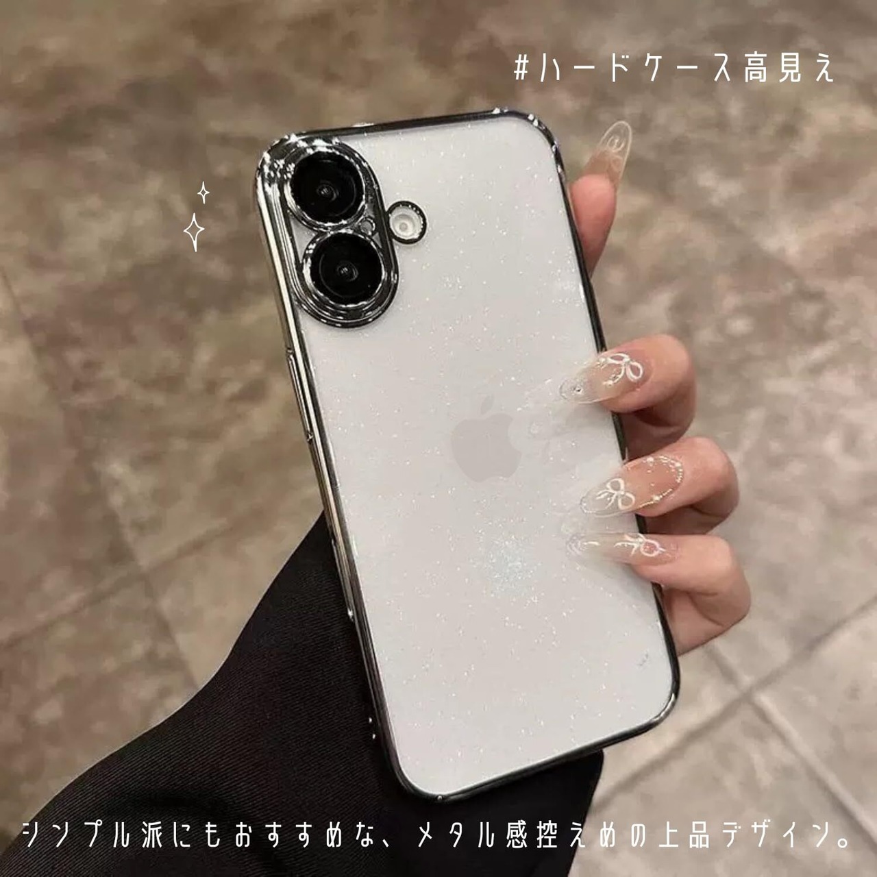 【ラメ×メタルで、さりげなくきらめく。しかも驚くほど軽い】 透け感のあるクリアベースに、光をまとうようなパウダーラメ。 フレームは、きらっと上品な「シルバー」と、やさしい「ピンク」の2色。 華やかすぎず、甘すぎない。大人っぽさと可愛さのちょうどいいバランス。 驚くほど軽くて、つけているのを忘れるくらい。ノンストレスな使い心地も嬉しいポイント◎ 毎日手に取るたび、“ときめき”と“心地よさ”がちゃんとある、そんなケースです。