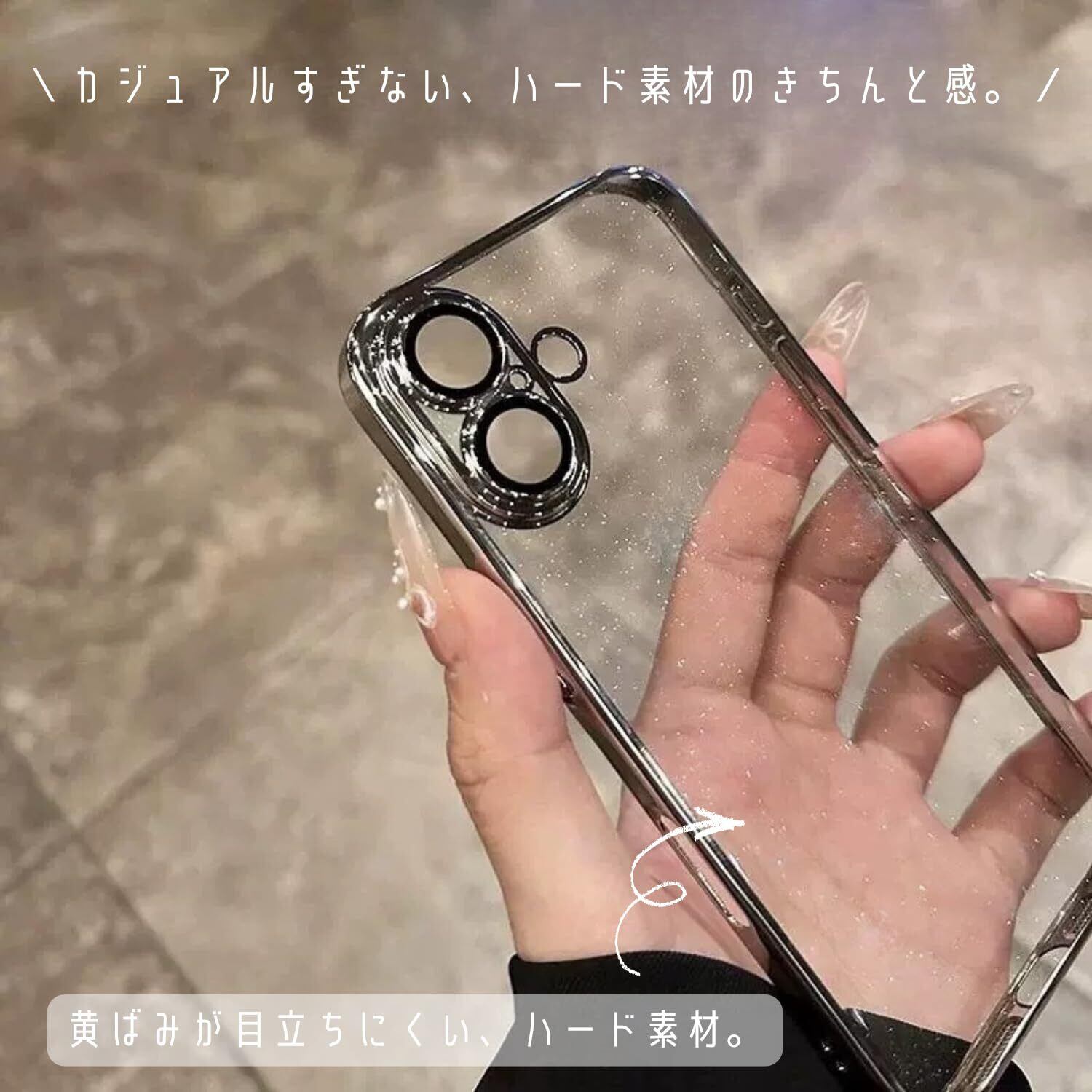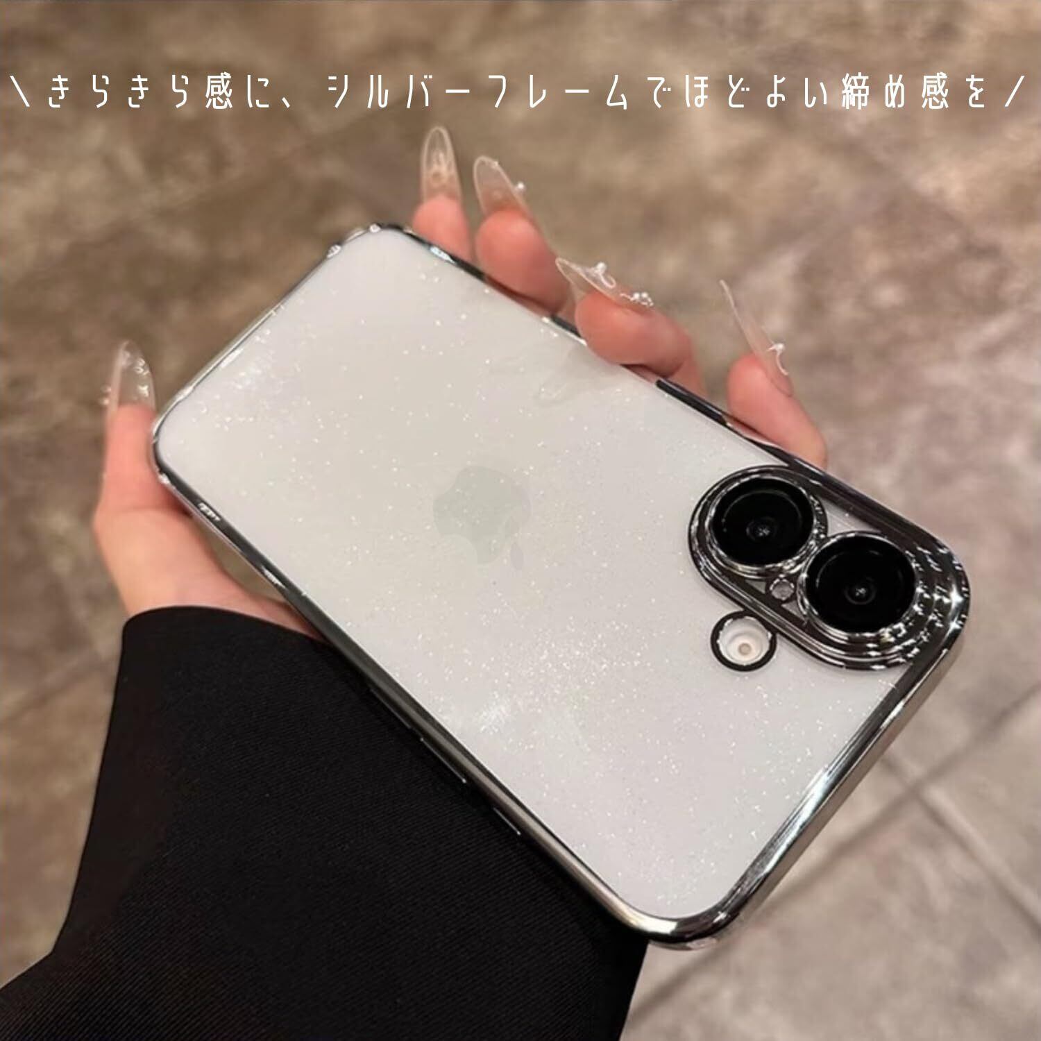 saymi's メタリック フレーム 韓国 iPhone15 ケース ラメ×メタルでつくる愛されケース 黄ばみが目立ちにくい ハードタイプ 微細な煌めき 可愛い (シルバー, iPhone15) | kki