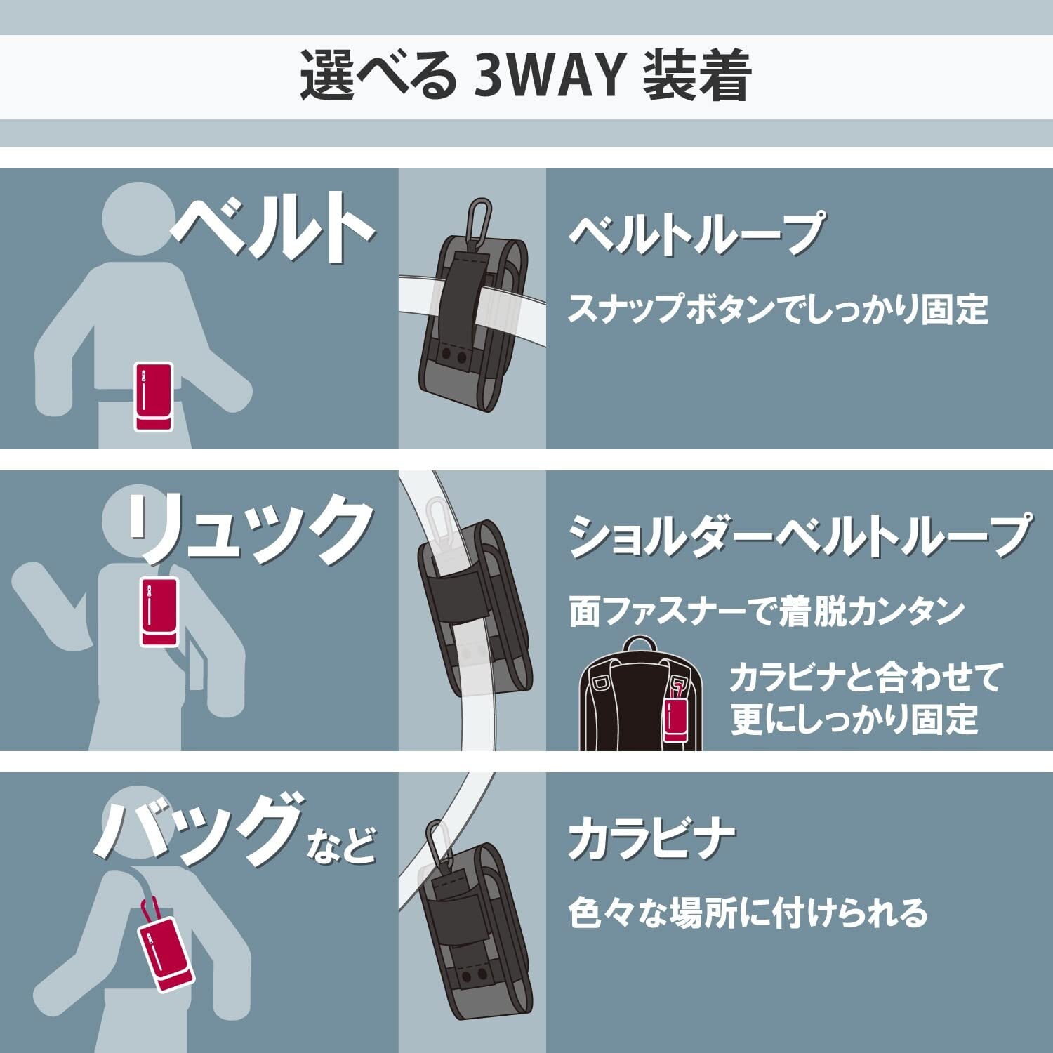■必要に応じて3つの装着方法を選べるスマートフォン用キャリングポーチです。