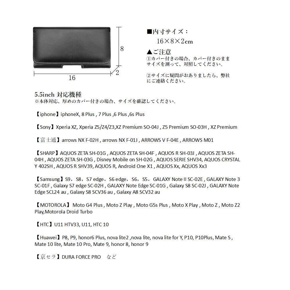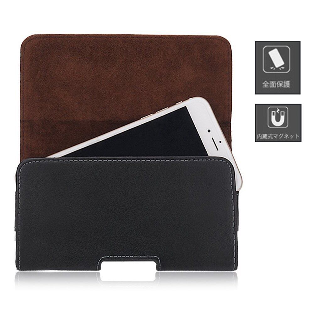 Toprime ベルトケース 横型 本革 スマホポーチ U字型クリップ ループ カジュアル シンプル iphone8 iphone7 iphoneSE iphone11 5.5インチ ブラック | kki