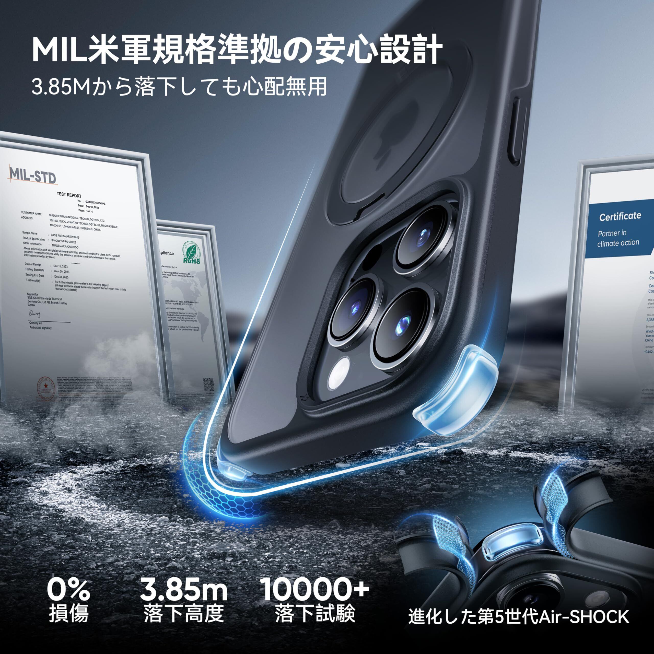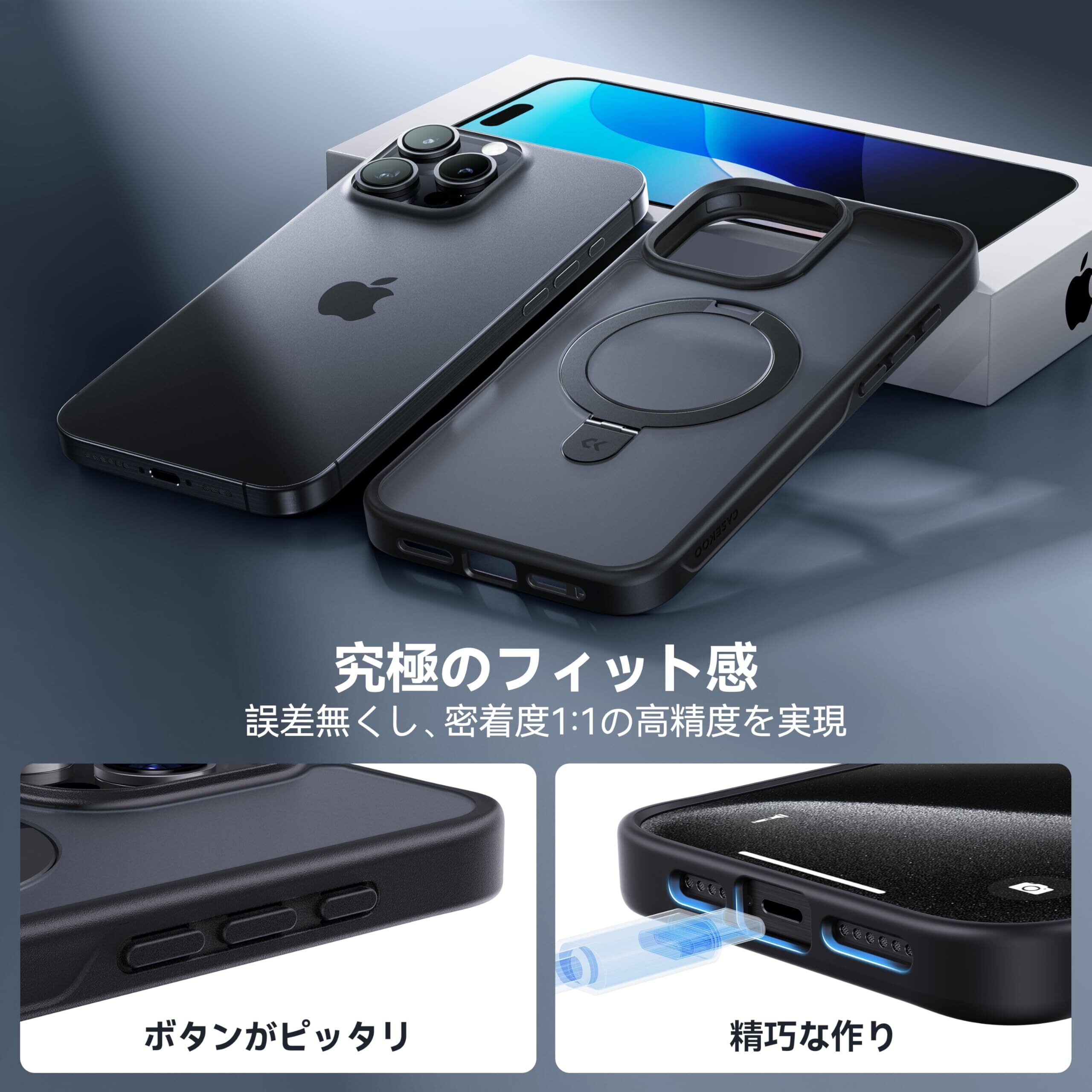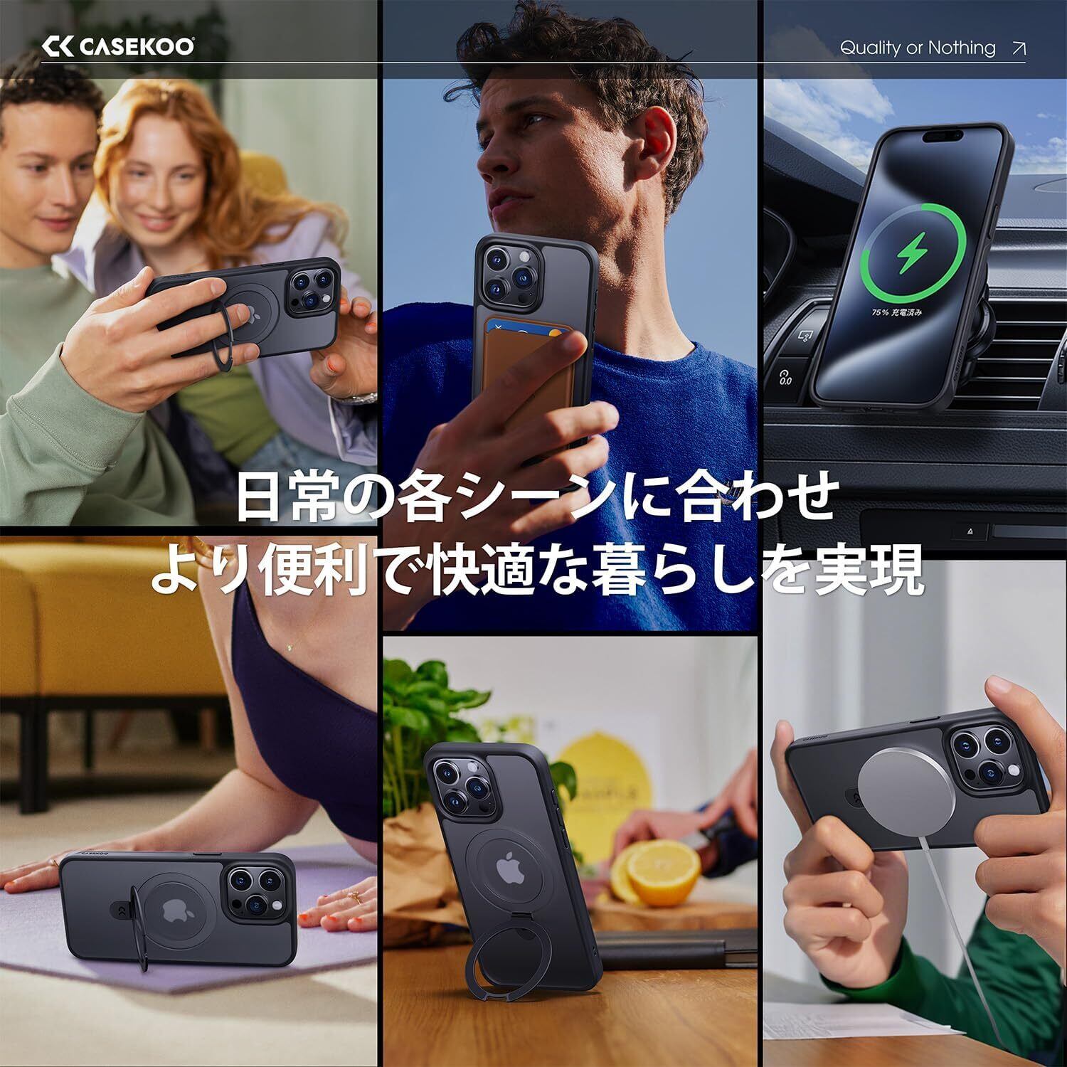 【8年間の技術結晶!4in1超万能モデル】CASEKOO iPhone 15 Pro Max 用 ケース 米軍MIL規格 耐衝撃 MagSafe対応 隠しスタンド 指紋防止 マット仕上げ 黄変防止 薄型半透明 スマホケース ストラップホール付き ワイヤレス充電対応 アイフォン15proMax 用ケース(ブラック)