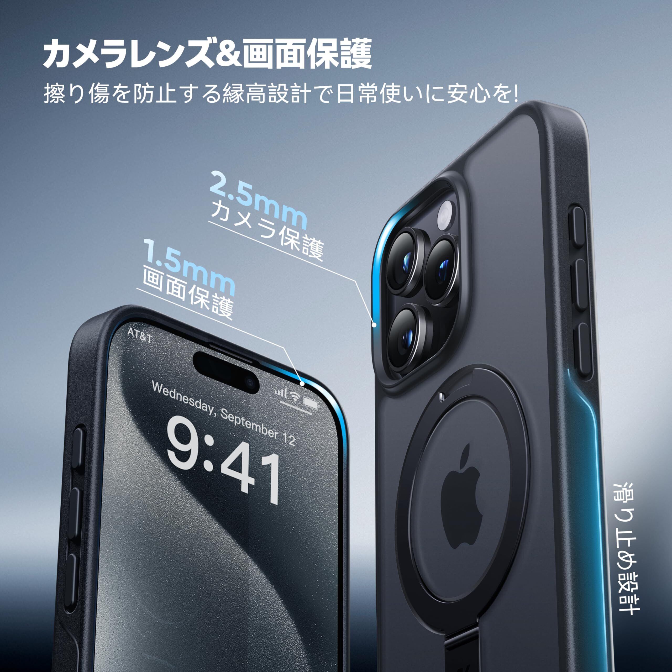 【8年間の技術結晶!4in1超万能モデル】CASEKOO iPhone 15 Pro Max 用 ケース 米軍MIL規格 耐衝撃 MagSafe対応 隠しスタンド 指紋防止 マット仕上げ 黄変防止 薄型半透明 スマホケース ストラップホール付き ワイヤレス充電対応 アイフォン15proMax 用ケース(ブラック) | kki