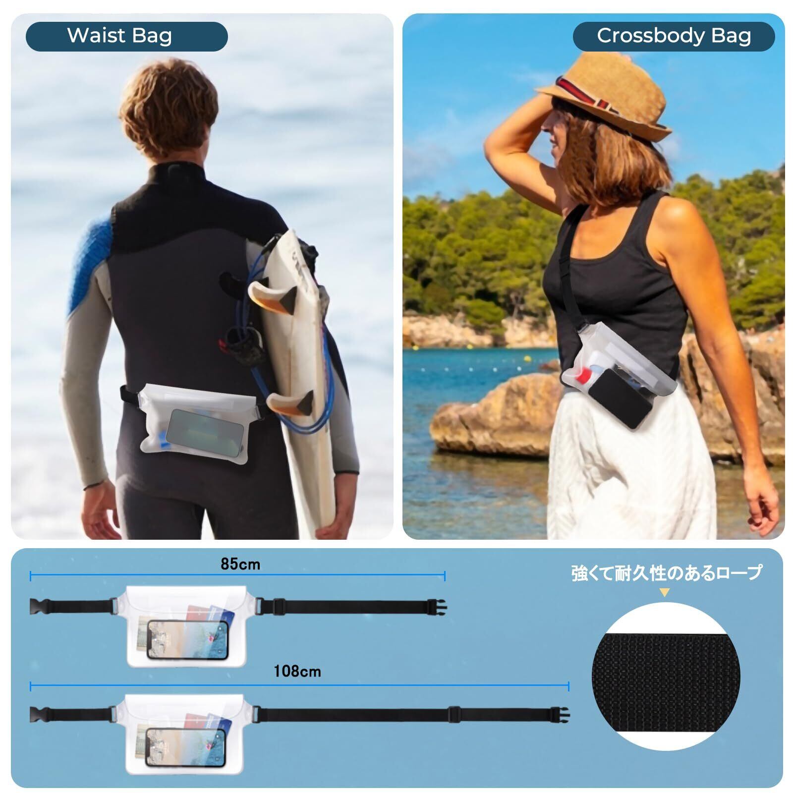 【シーンに合わせて使える2個セット】本製品は防水クロスボディバッグと、スマホ用防水ケースの2個セットでございます。必要に応じて選べて使うことができます。