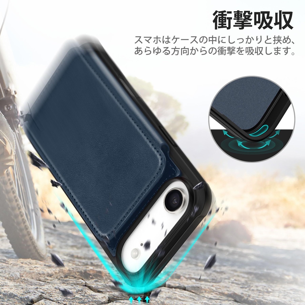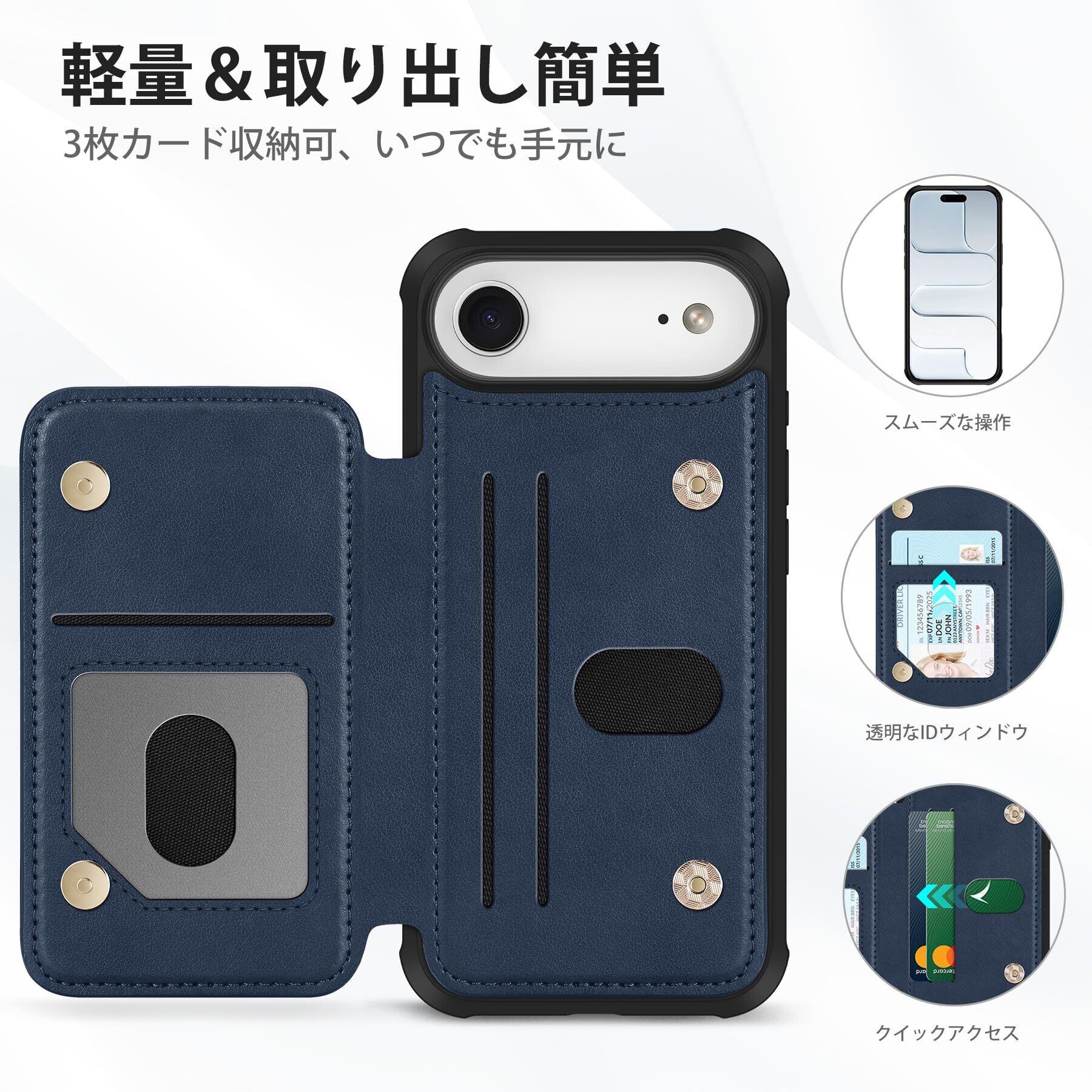 TUCCH iPhone Air 対応 ケース ショルダーストラップ付き 背面カード収納 6.5インチ PUレザー RFIDブロッキング ストラップホール付き 3つポケット 取り外し不可 財布型 TPU素材 滑り止め 衝撃吸収 マグネット開閉 アイフォン Air 対応 携帯カバー 2025年発売 ダークブルー | kki