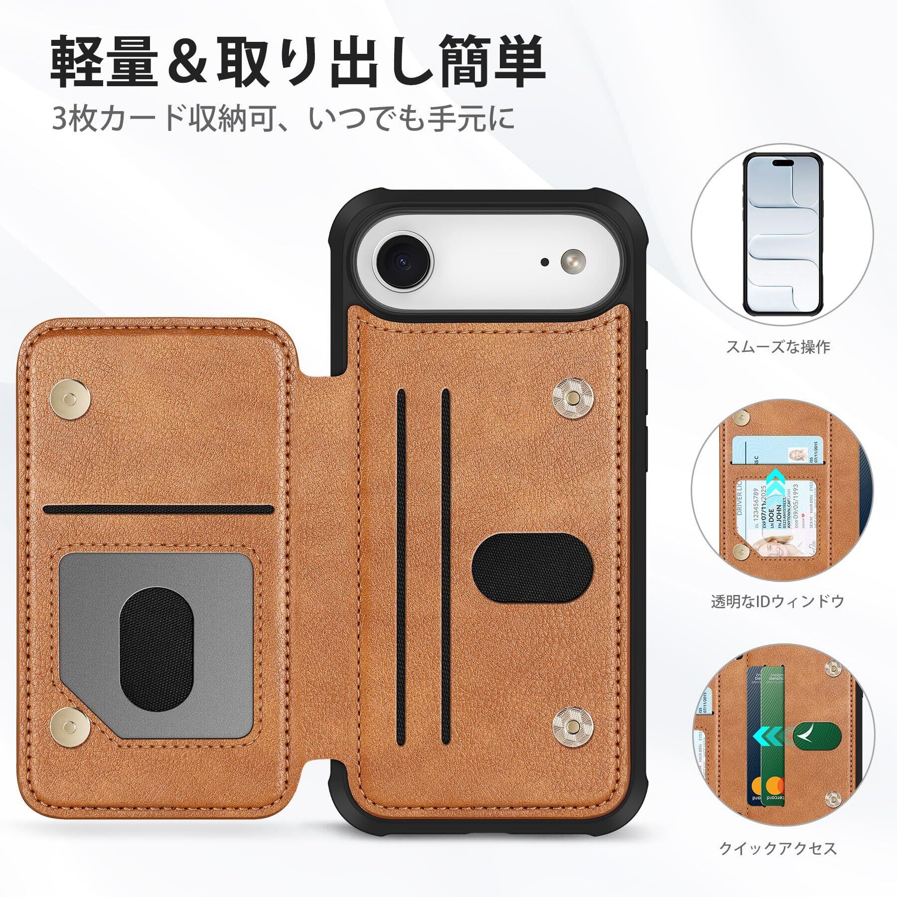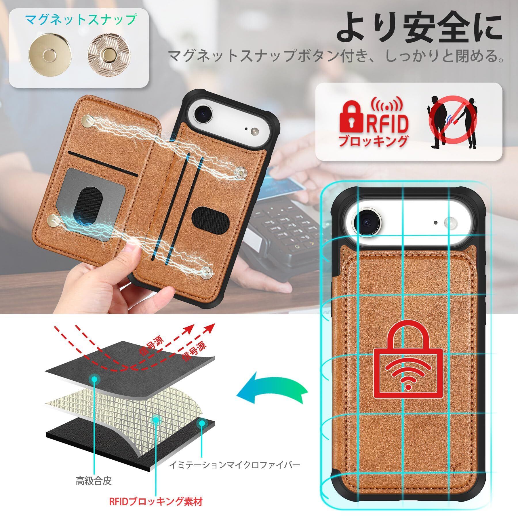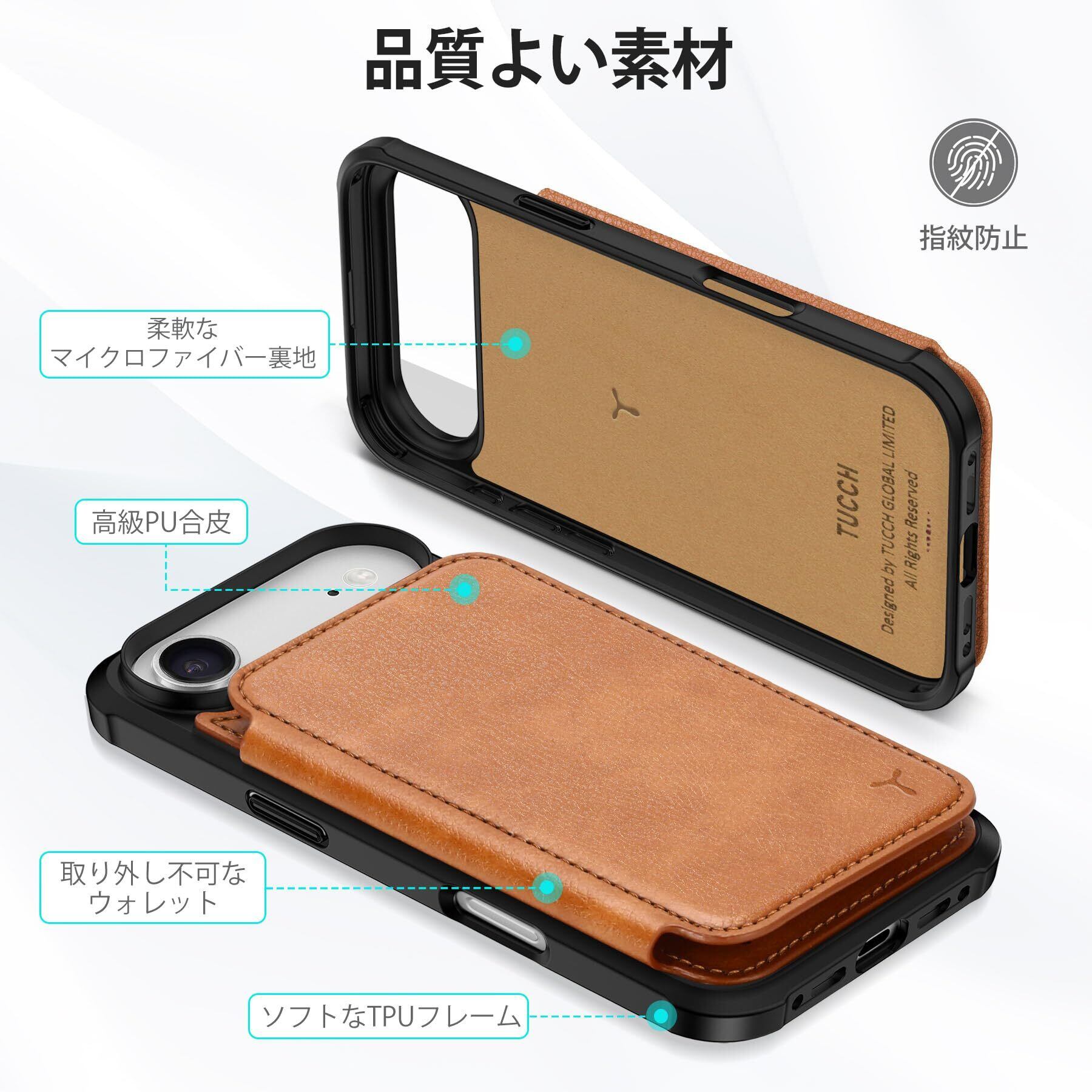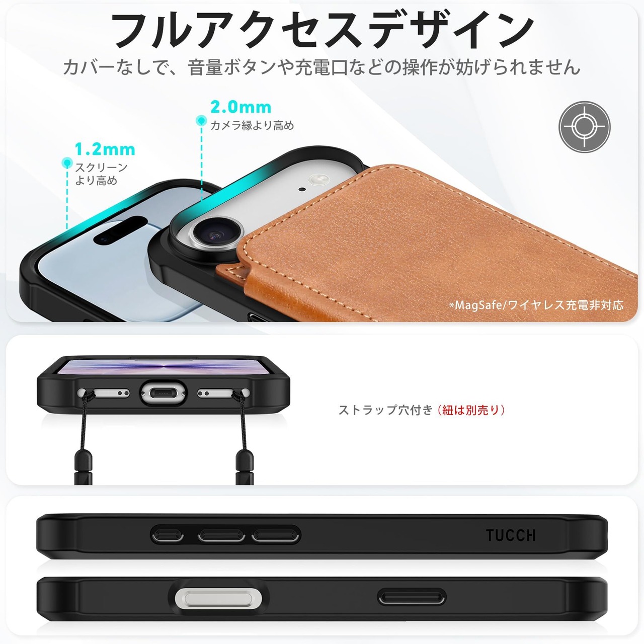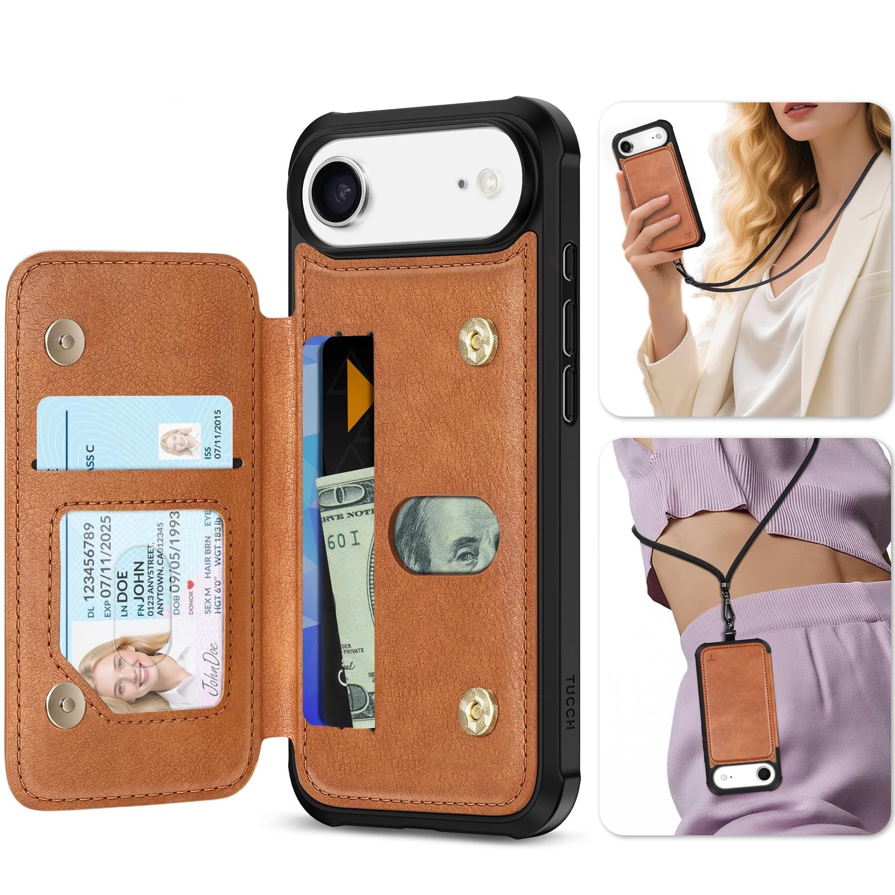TUCCH iPhone Air 対応 ケース ショルダーストラップ付き 背面カード収納 6.5インチ PUレザー RFIDブロッキング ストラップホール付き 3つポケット 取り外し不可 財布型 TPU素材 滑り止め 衝撃吸収 マグネット開閉 アイフォン Air 対応 携帯カバー 2025年発売 ライトブラウン