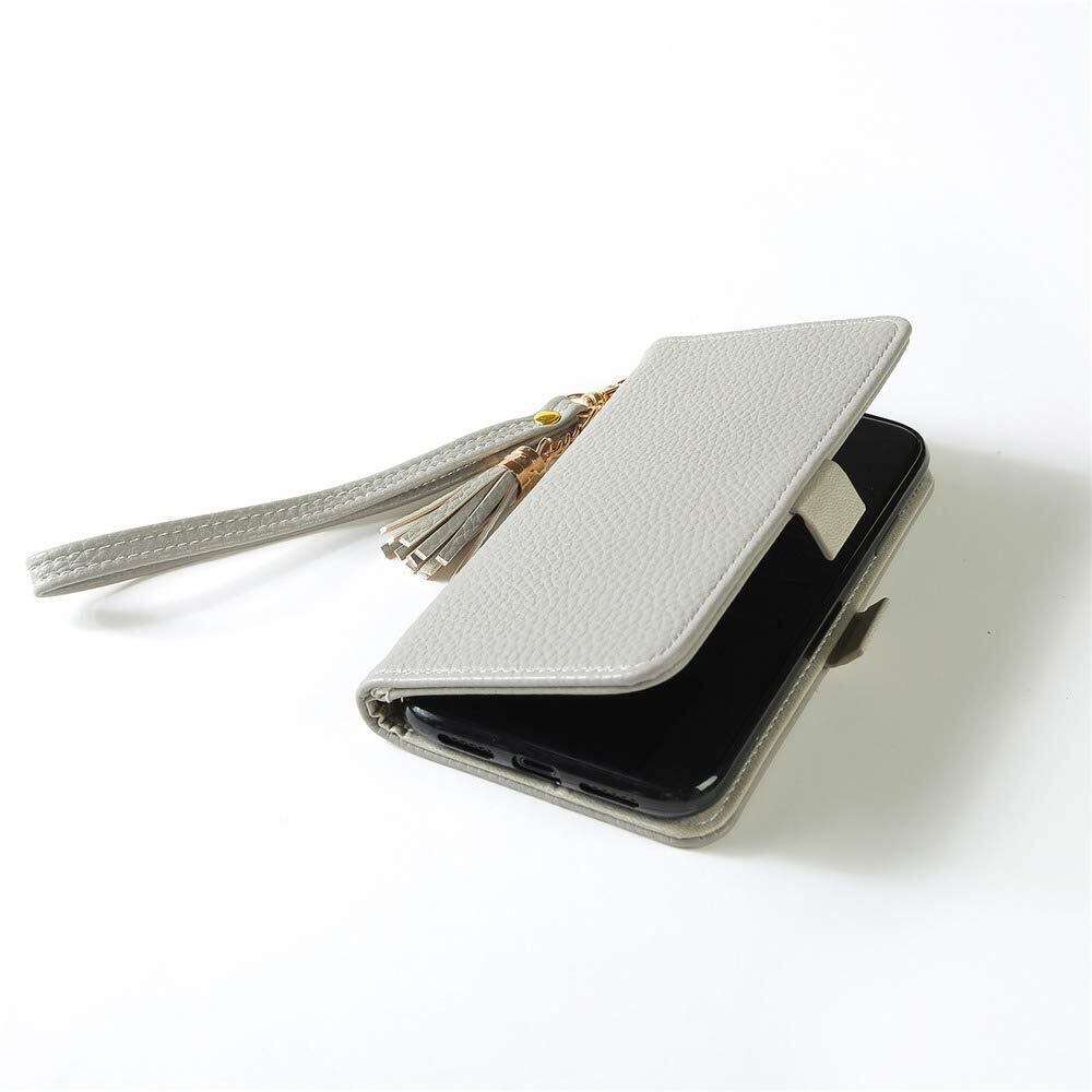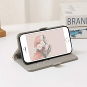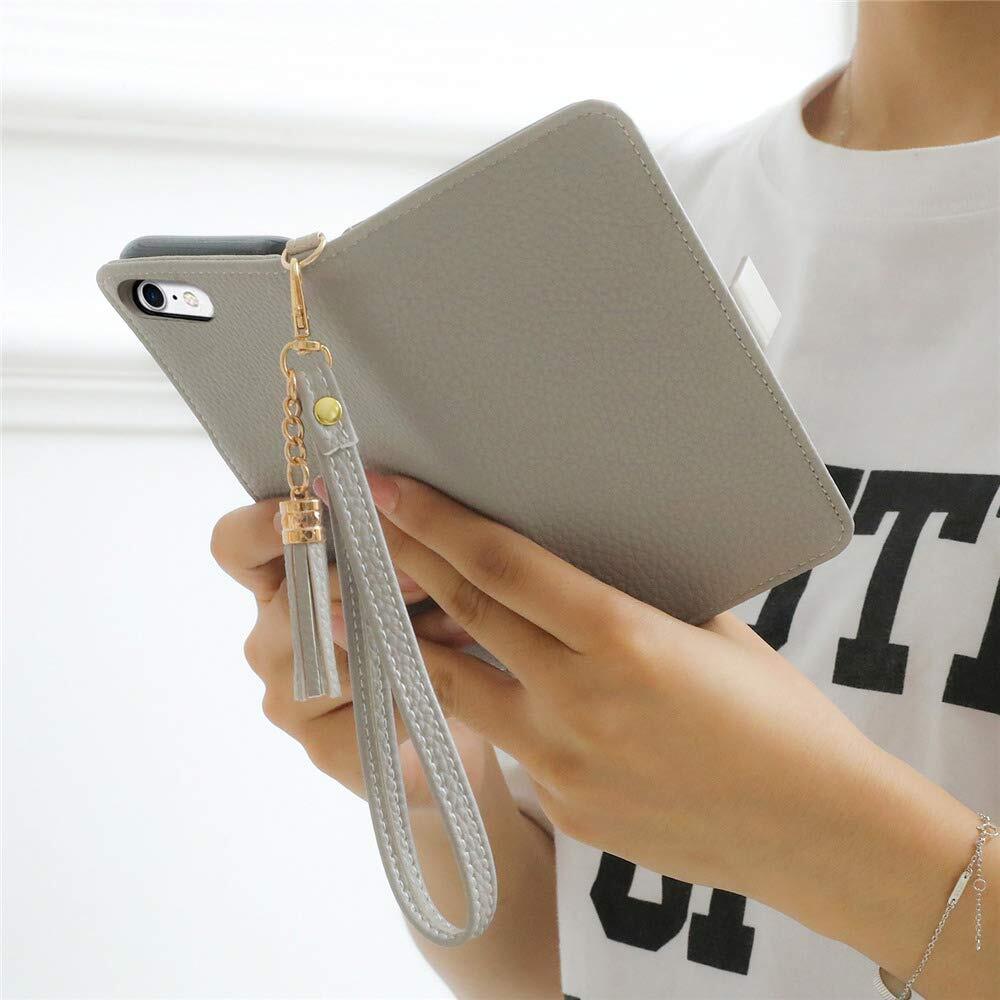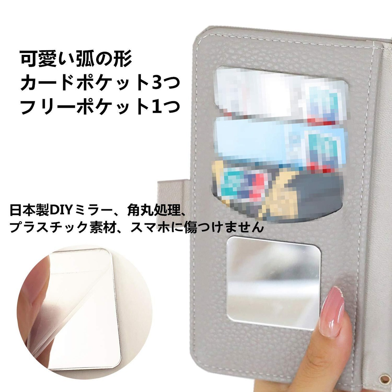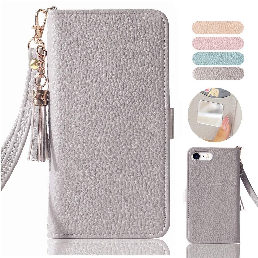 iPhone SE2/SE3/8/7 対応 手帳型ケース マグネット式 ストラップ付き 薄型 全面保護 ミラー付き 財布型 かわいい おしゃれ[グレー]