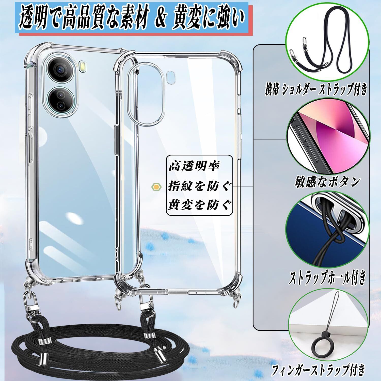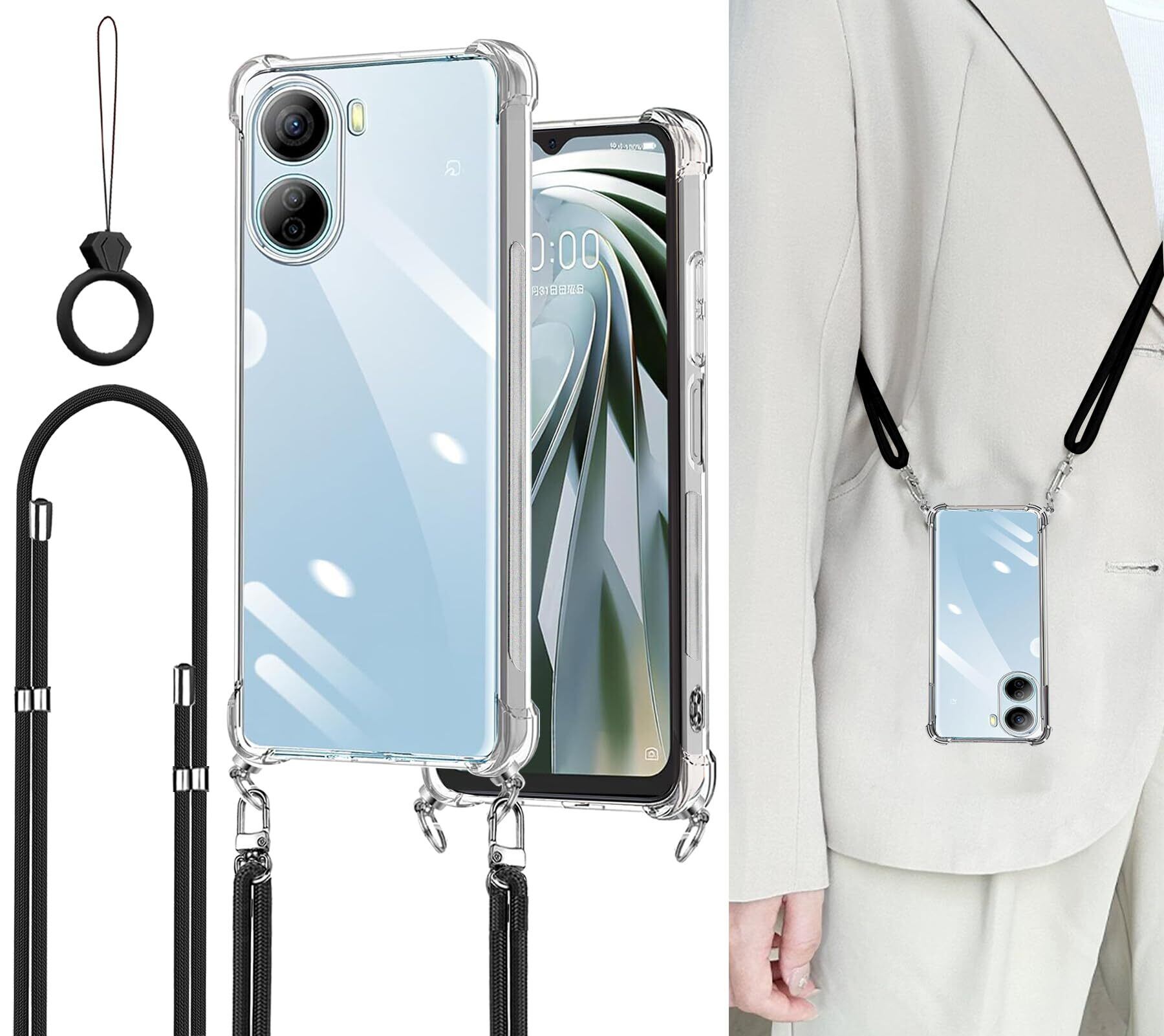 Ausrann ZTE Libero 5G IV ケース スマホケース zte リベロ5g iv A302ZT / ZTE nubia Ivy ケース ショルダー ストラップ2枚付き 紐付き 首掛け 肩がけ 斜め掛け ストラップホール付き 薄型 軽量 耐衝撃 シリコン TPU バンパー 黄変防止 透明 カバ- 米軍MIL規格 (クリア) | kki
