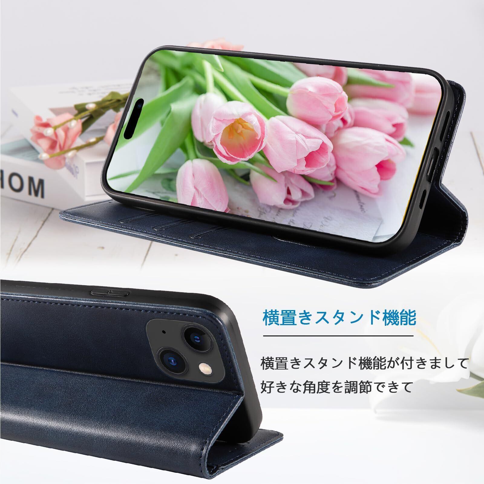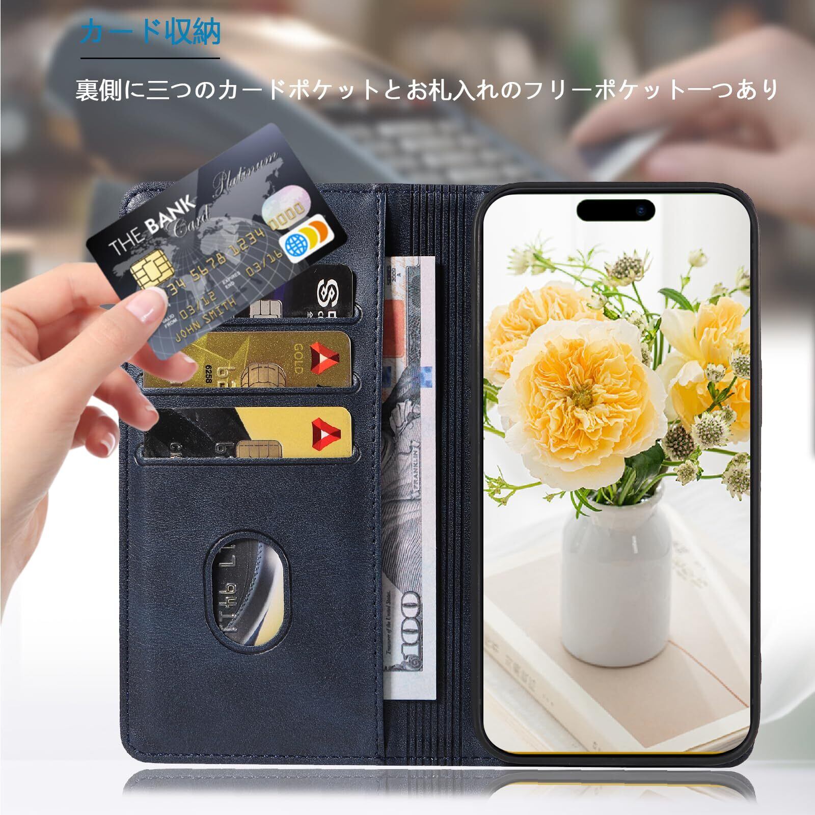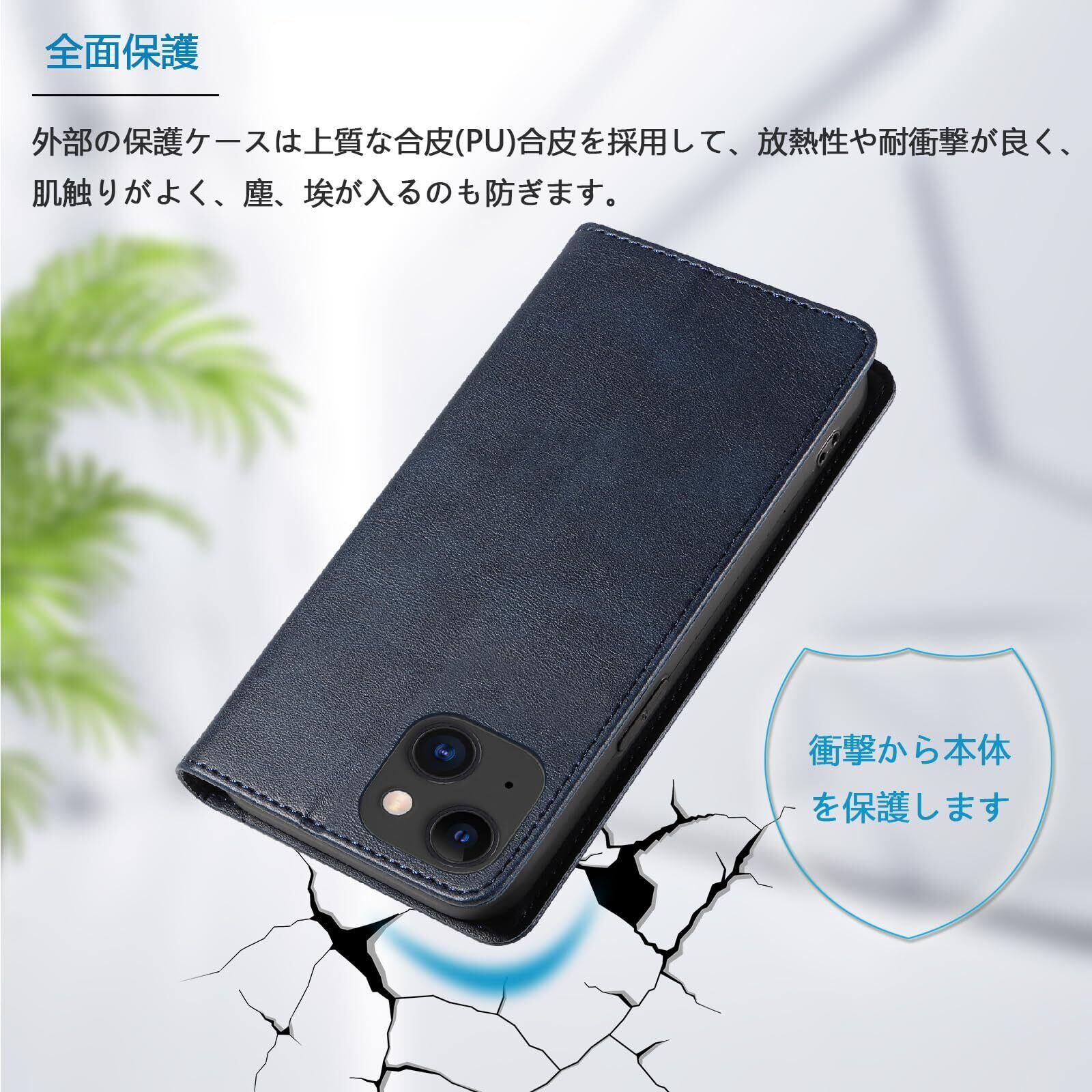 iPhone15 ケース アイフォン15 スマホケース 手帳型 携帯カバー レザー 耐衝撃 軽量 着脱しやすい 放熱性 マグネット式 カード収納 スタンド機能ケース15 対応 360度保護 PinLiSheng (ネイビー, iPhone 15) | kki