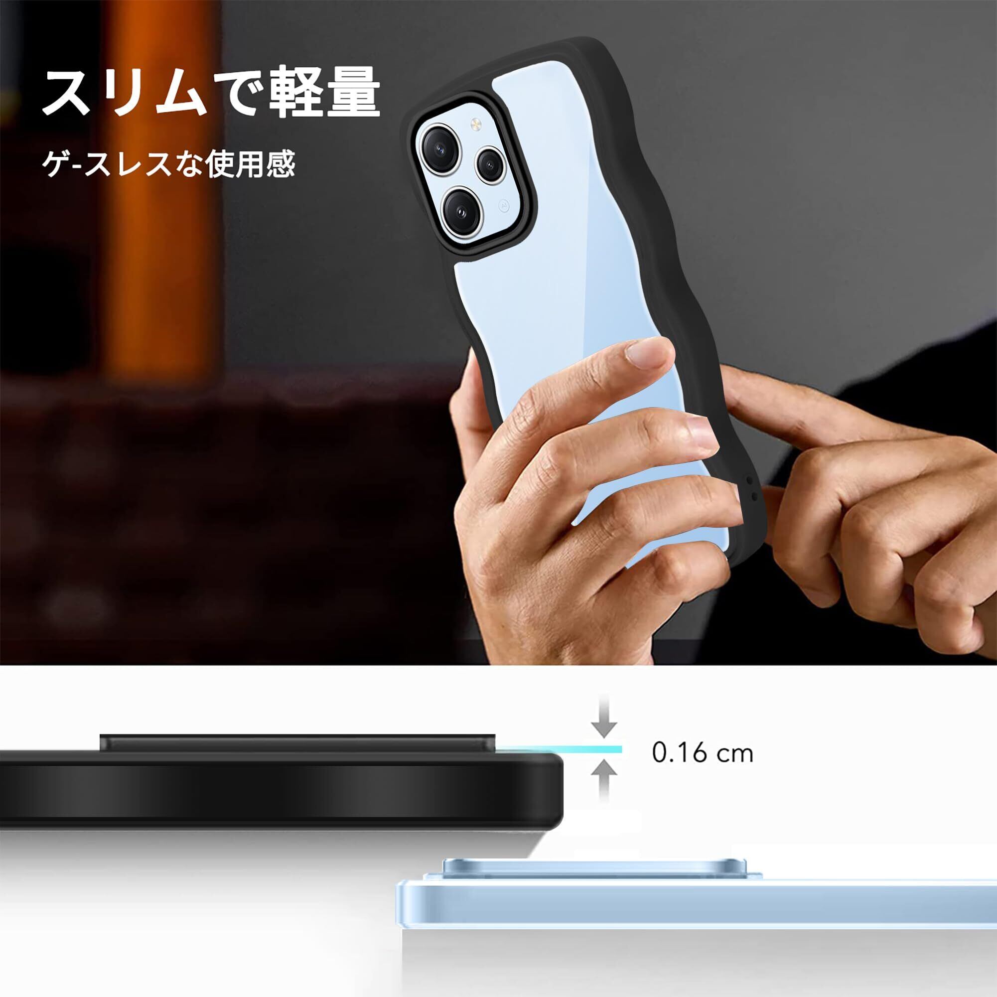 Xiaomi Redmi 12 5G ケース クリア 全面保護 シャオミ リドミ12 5G スマホケース 人気 かわいい カバー 透明 耐衝撃 滑り止め 薄型 軽量 TPU レンズ保護 おしゃれ 落下防止 ワイヤレス充電対応 (ブラック) | kki