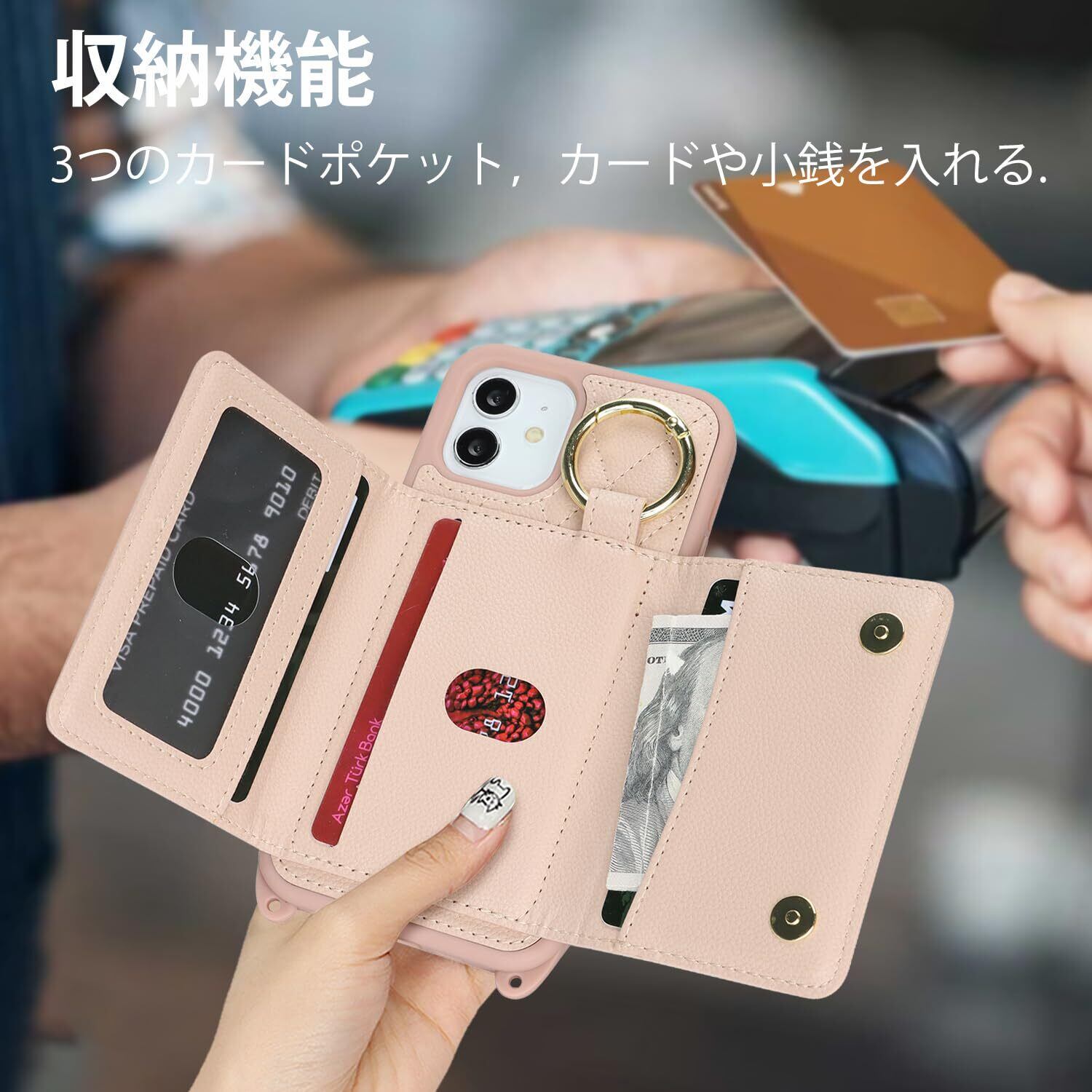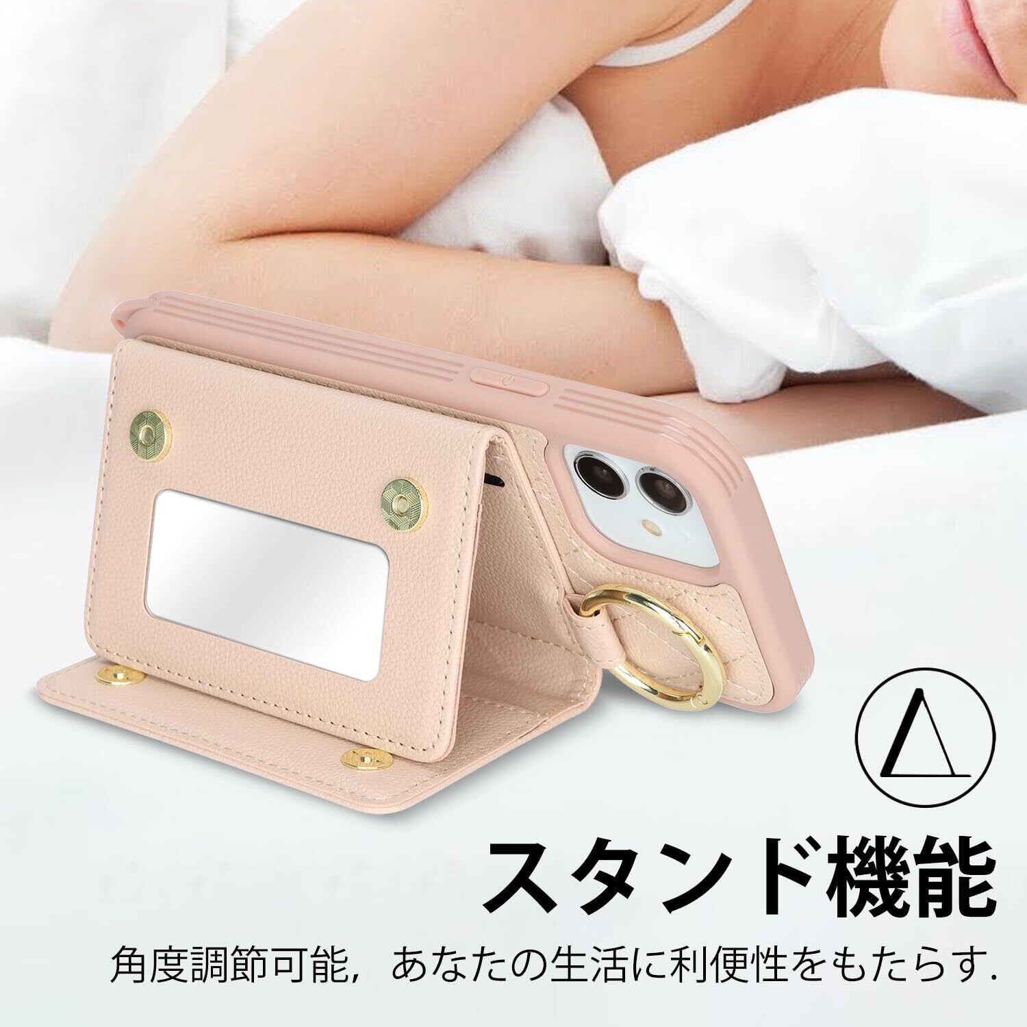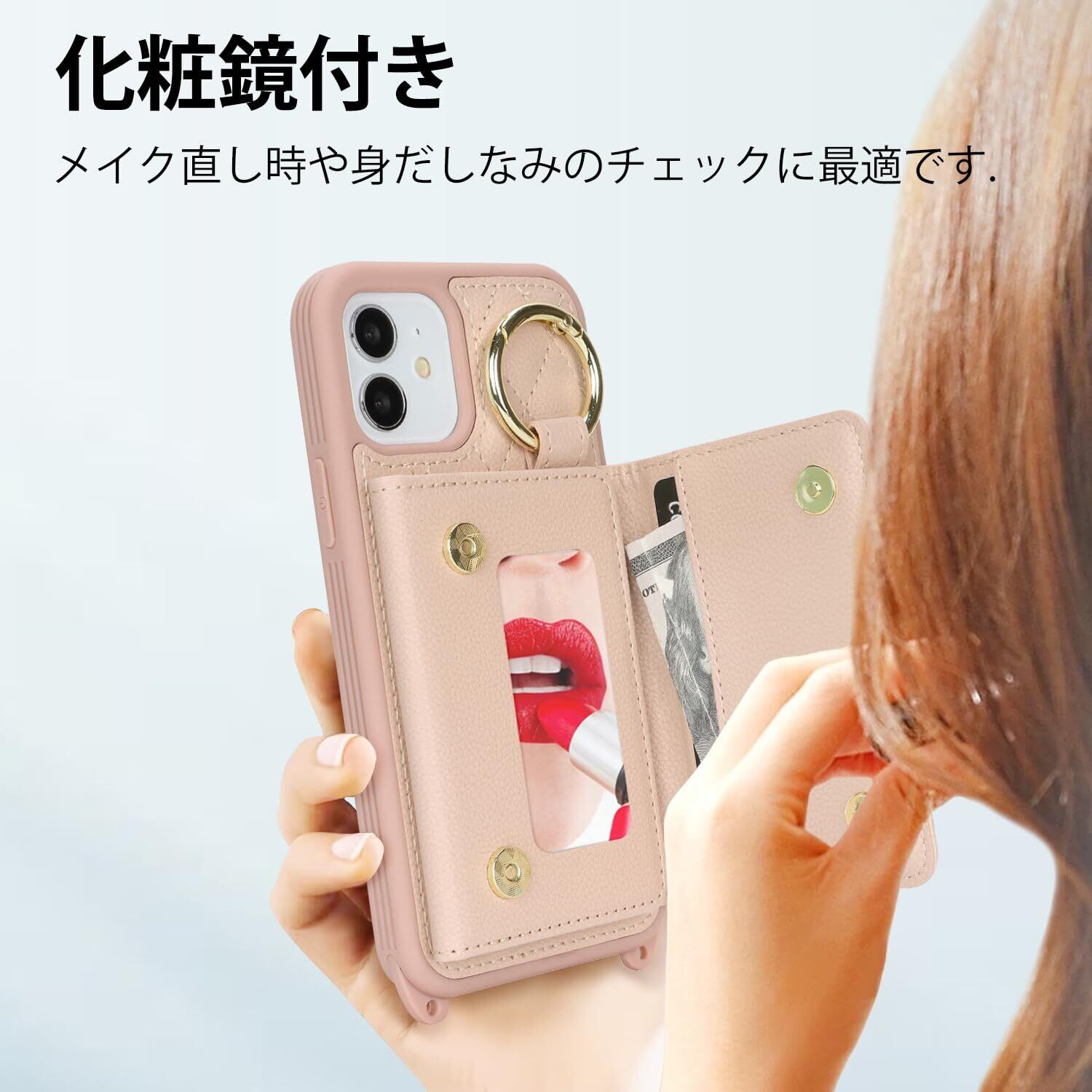 DEYHU 対応 iPhone 12 ケース ショルダー いpほね12ケース カード収納 鏡 肩掛け 斜めかけ スマホショルダー アイフォン12 pro ストラップ付き 耐衝撃 調節可能な 携帯ケース - ローズゴールド